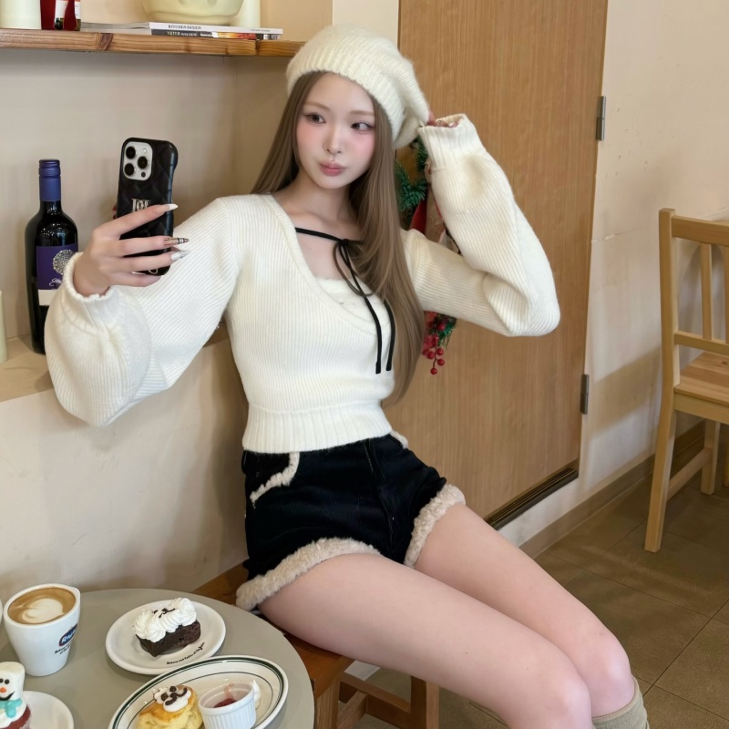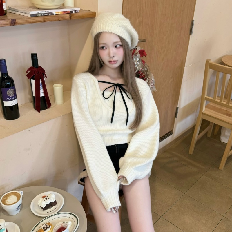 ふわふわシャギーベアトップス×配色リボンニットのセットで、“あざと可愛い”を叶える主役級レイヤードアイテム♡