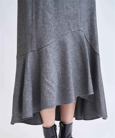 柔らかなウール混素材に、繊細なラメを織り交ぜたマーメイドシルエットのスカート。