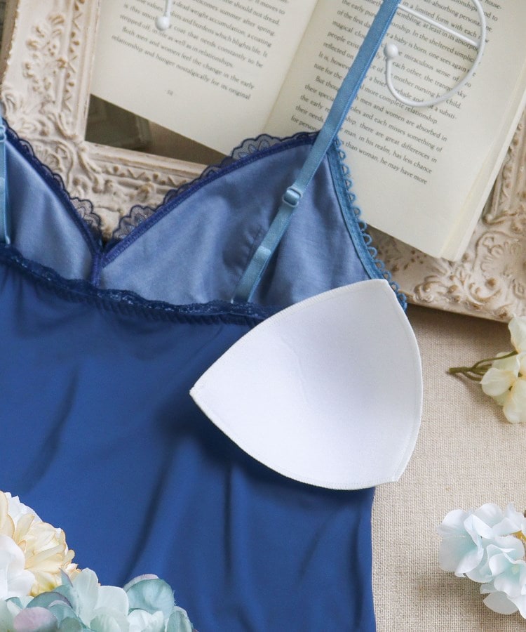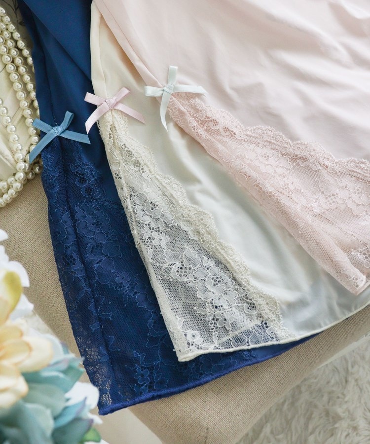 カップがついたタイプのスリップなので、ブラジャーを着けずにこれ1枚でご着用いただけます。身生地はすべりがよい素材を使用しており、さらりとした気持ちの良い着心地です。伸縮性があり、ご着用していてストレスを感じにくい仕様になっております。