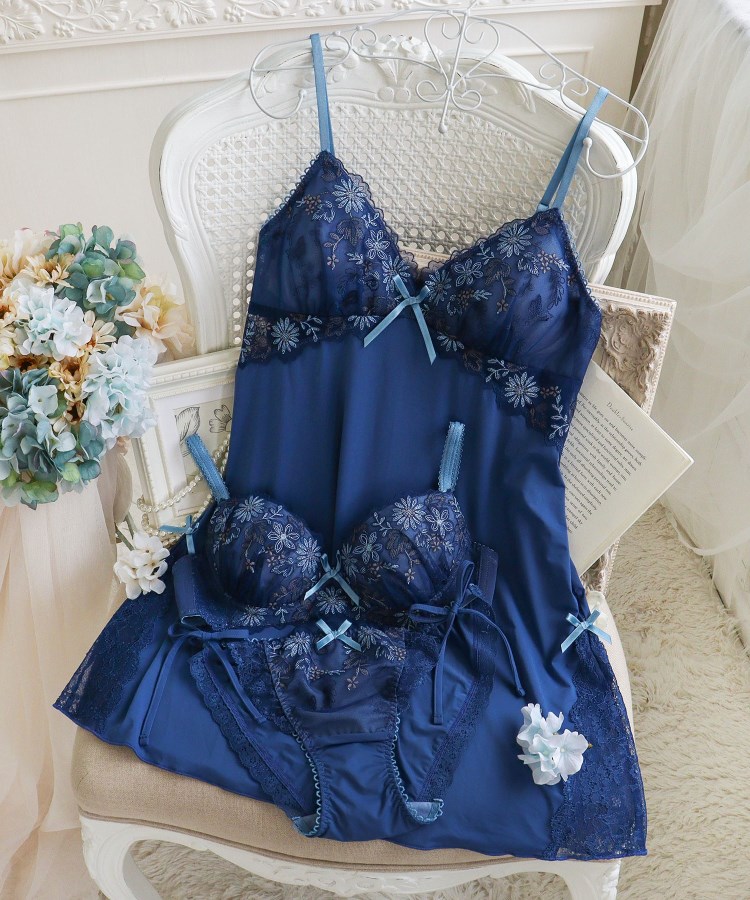 きらめくマーガレットのお花をモチーフにしたシリーズです。カップレースからカップ下部分には、線で描いたようなステッチでマーガレットや草花を刺繍して、キラキラとほのかに輝くラメ糸が、素朴な可愛らしさを演出。ポイントで温かみのあるウーリー糸をあしらうことで、やわらかくフェミニンな印象に仕上がりました。カップレースにはお花のアップリケを重ねて、さりげない立体感を表現しています。裾にはリボンとV字でストレッチレースをほどこし、可愛らしさを後押ししながらも、上品な肌見せスタイルをお楽しみいただけます。日常にそっと寄り添ってくれるような、小さなときめきを詰め込んだコレクションです。