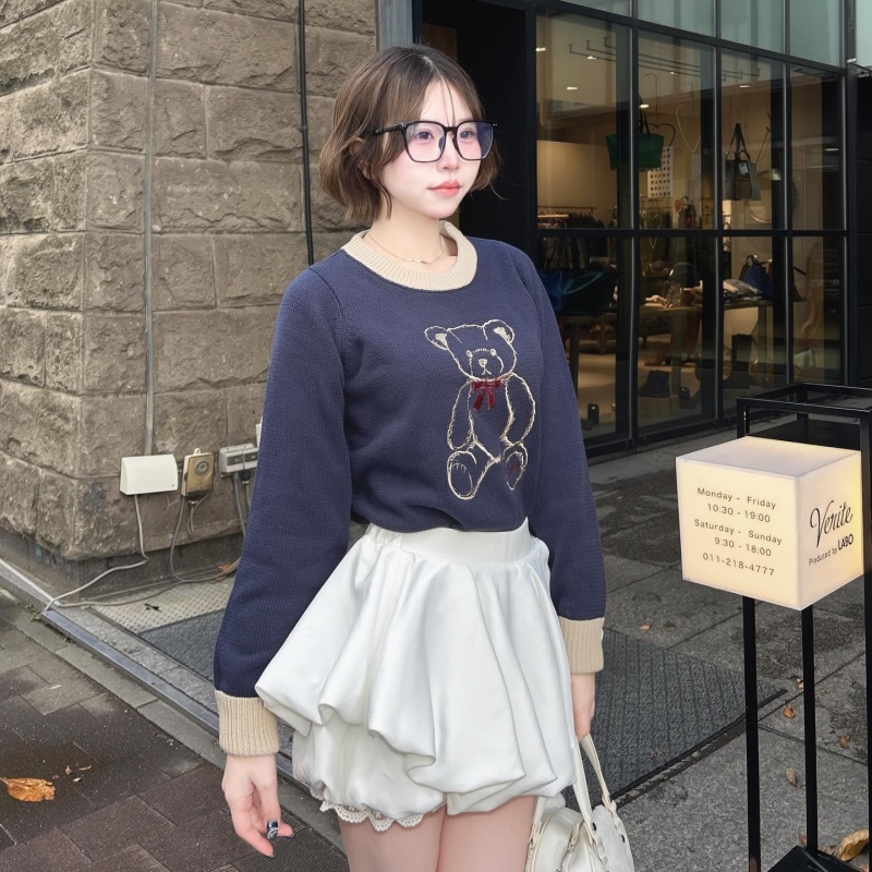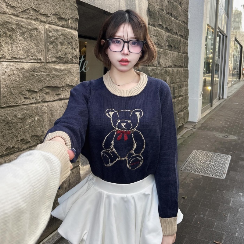 配色デザインが全体を引き締め、ふんわり肉厚ニットでラフなのに女の子っぽさを演出します🧸🎀
