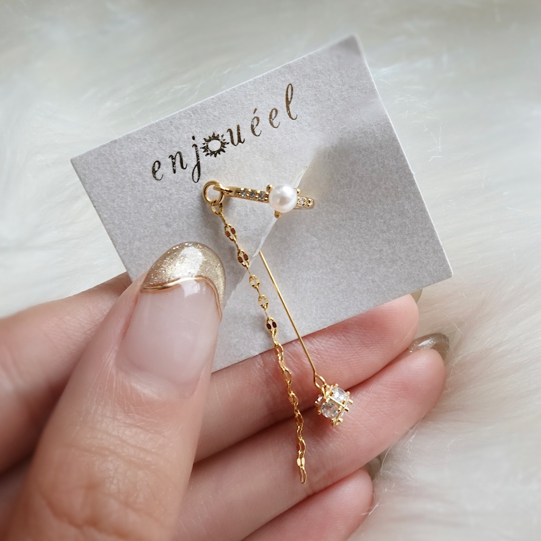 耳を挟む様に前後どちらからもチェーンが揺れるイヤーカフ🫨✨