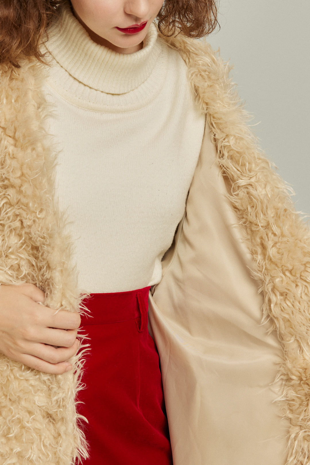 おすすめ商品のご紹介です🦙 《どの動物が鳴いているの?》Cream もこもこの素材が特徴のロングコートです! 同素材のマフラー付きで首元まで暖かくできます🎶