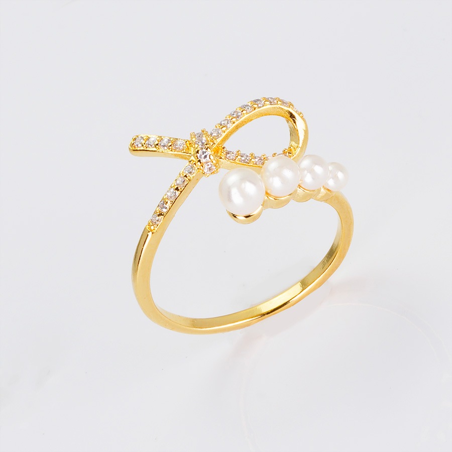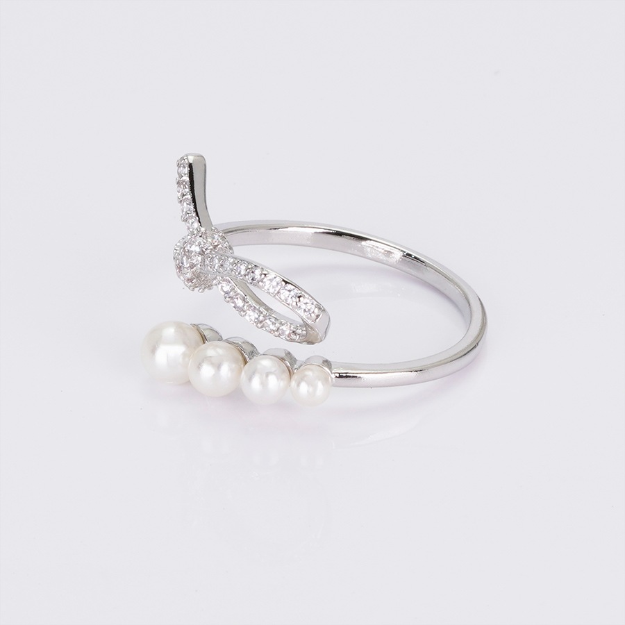 煌めくリボンモチーフと上品なパールを並べた、華やかな2連風デザイン🤍💭
