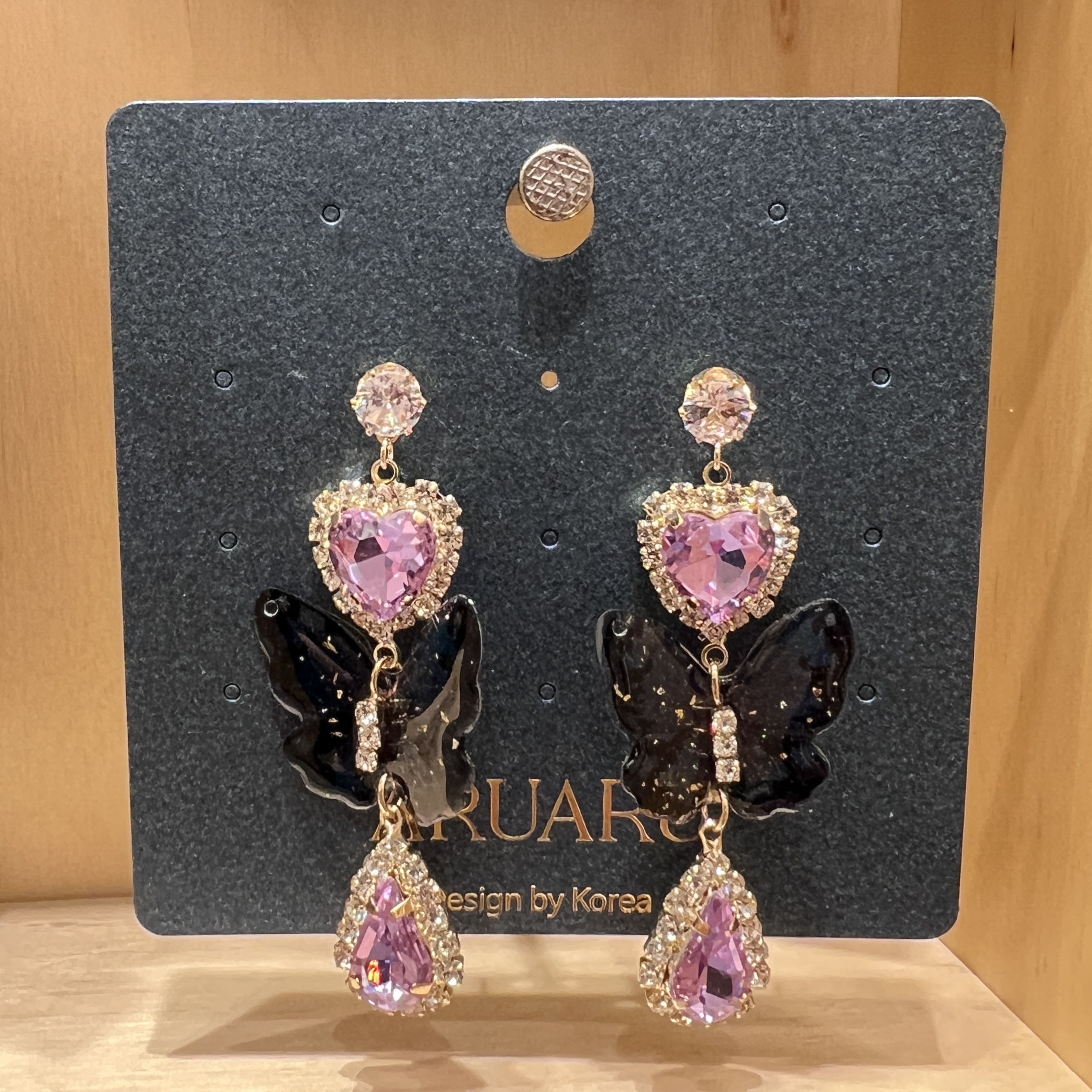 きらめくストーンーに、ハートモチーフと蝶のデザインを組み合わせた華やかなピアスです🦋