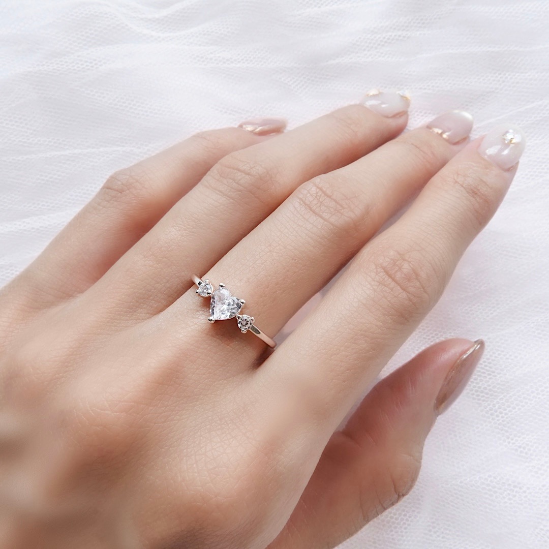 輝くハートカットのストーンが主役のリング。 日常にさりげないときめきをプラスしてくれるアイテムです。