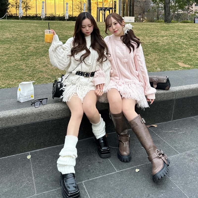 ワンピ風に着てロングブーツを合わせれば、一枚で華やかコーデが完成するよ👢💗
