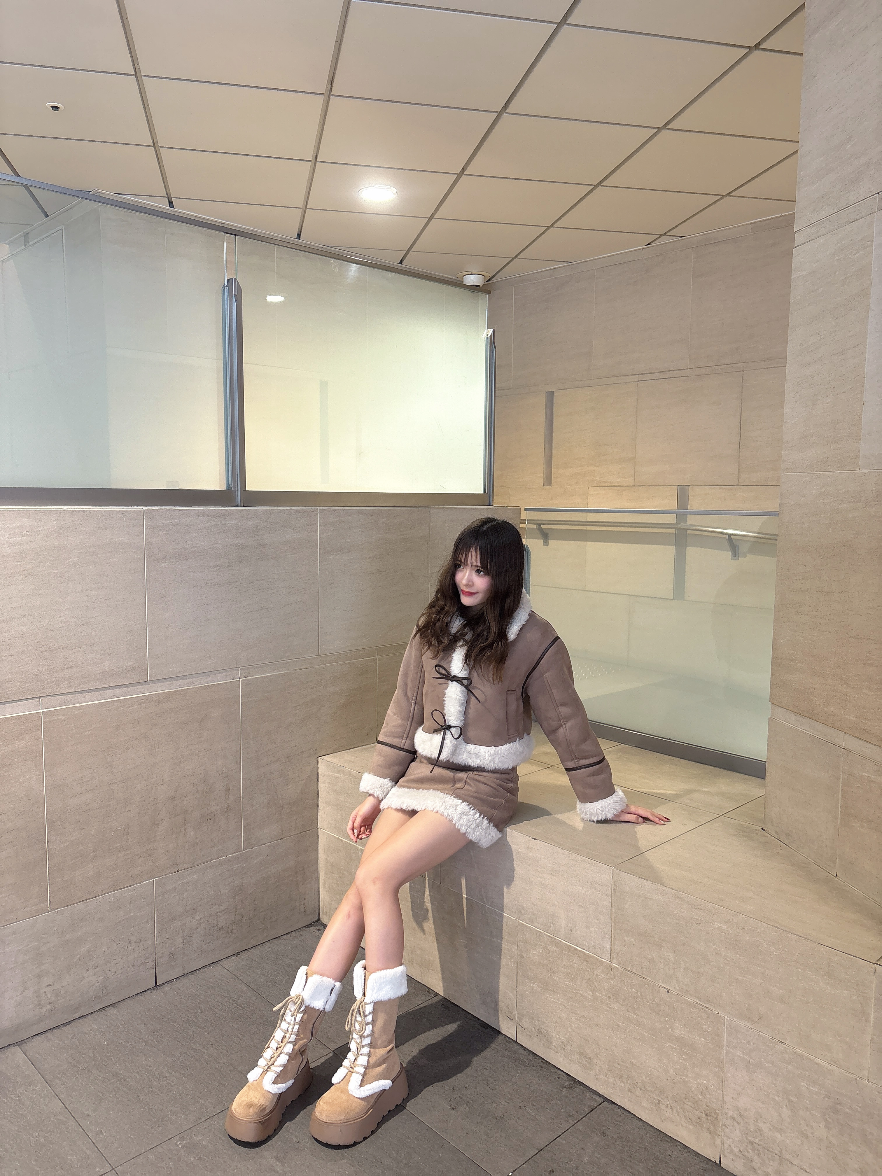 ・ムートンブーツと合わせて統一感のある冬服コーデに。