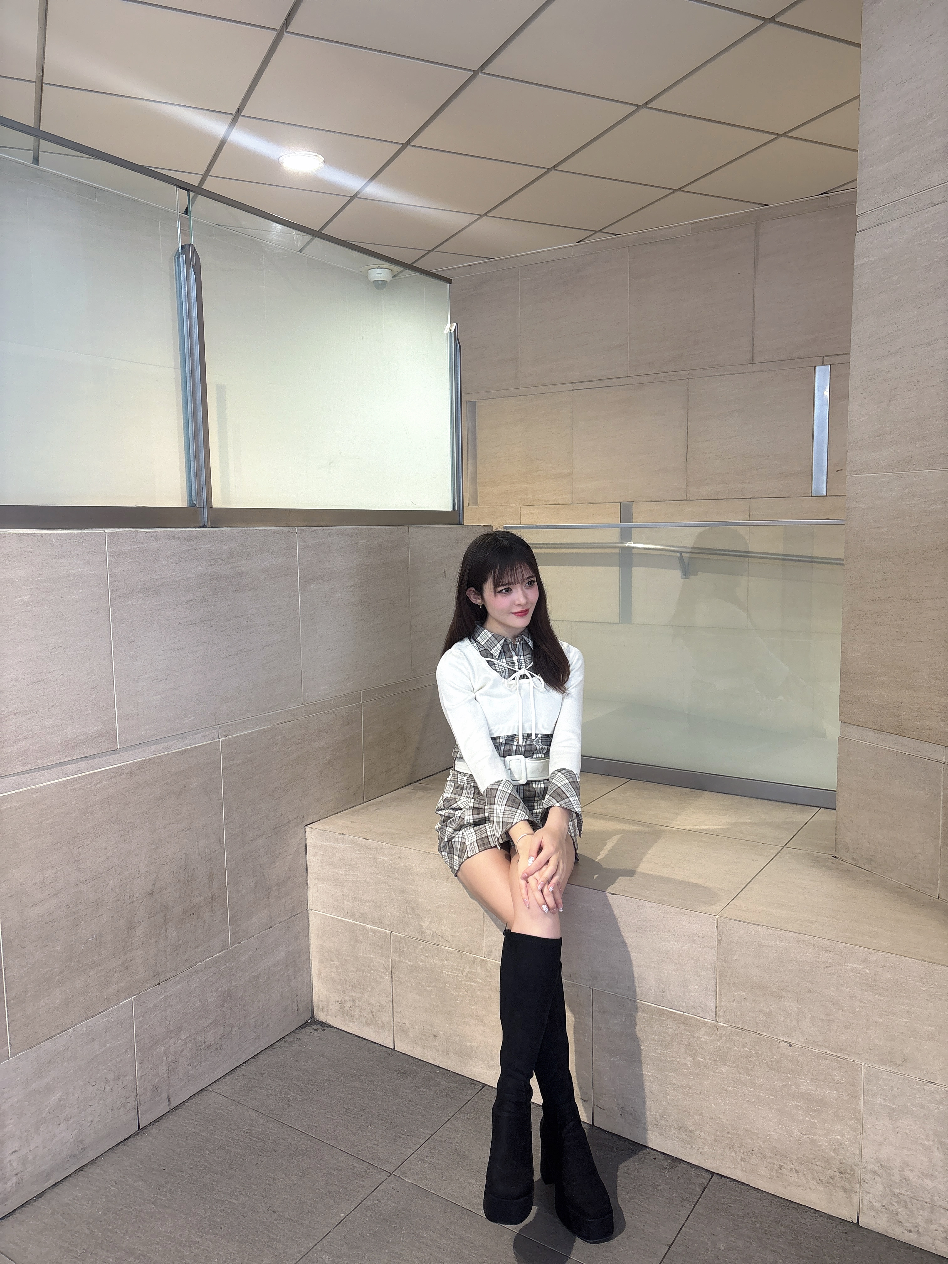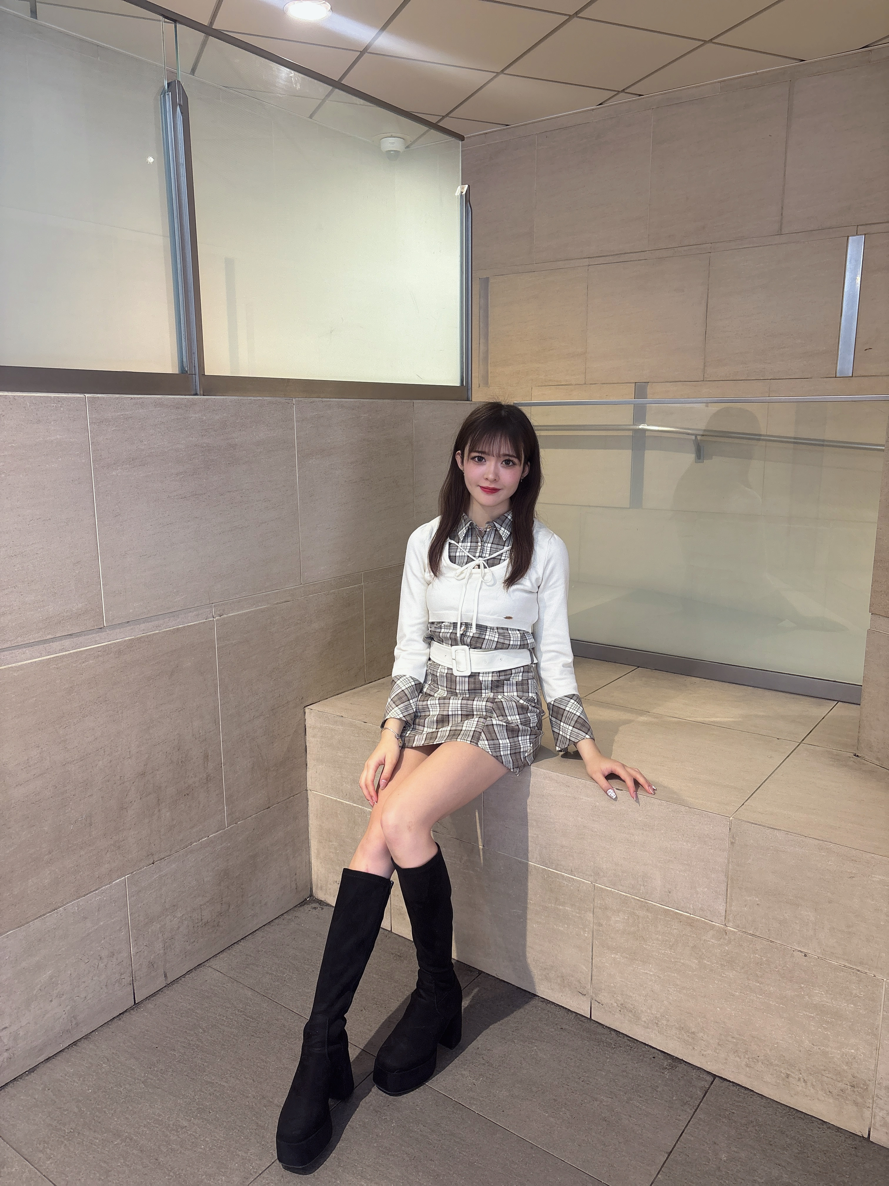 大人かわいいデザインで写真映えなのはもちろん、ショート丈ニットがスタイルアップも