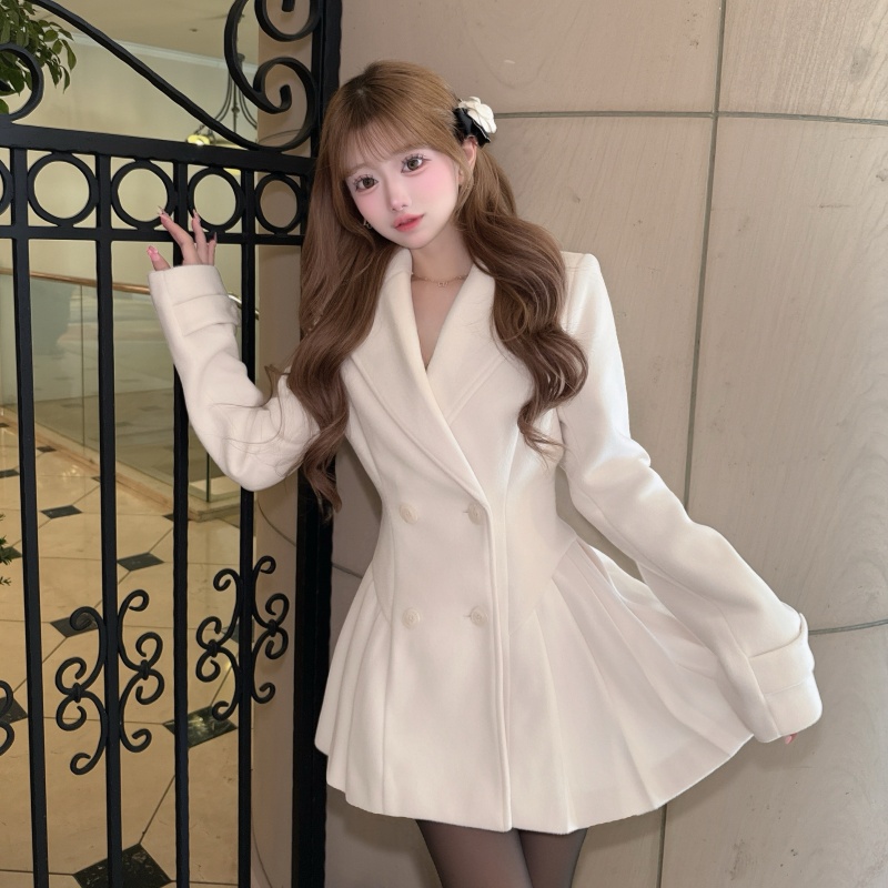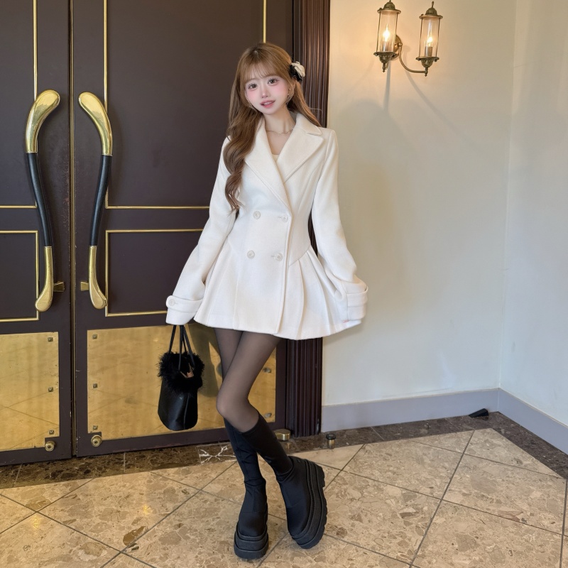 プリンセスラインの美しいくびれとサイドプリーツで、上品さとガーリーさを両立したフェミニンなジャケットコート♡