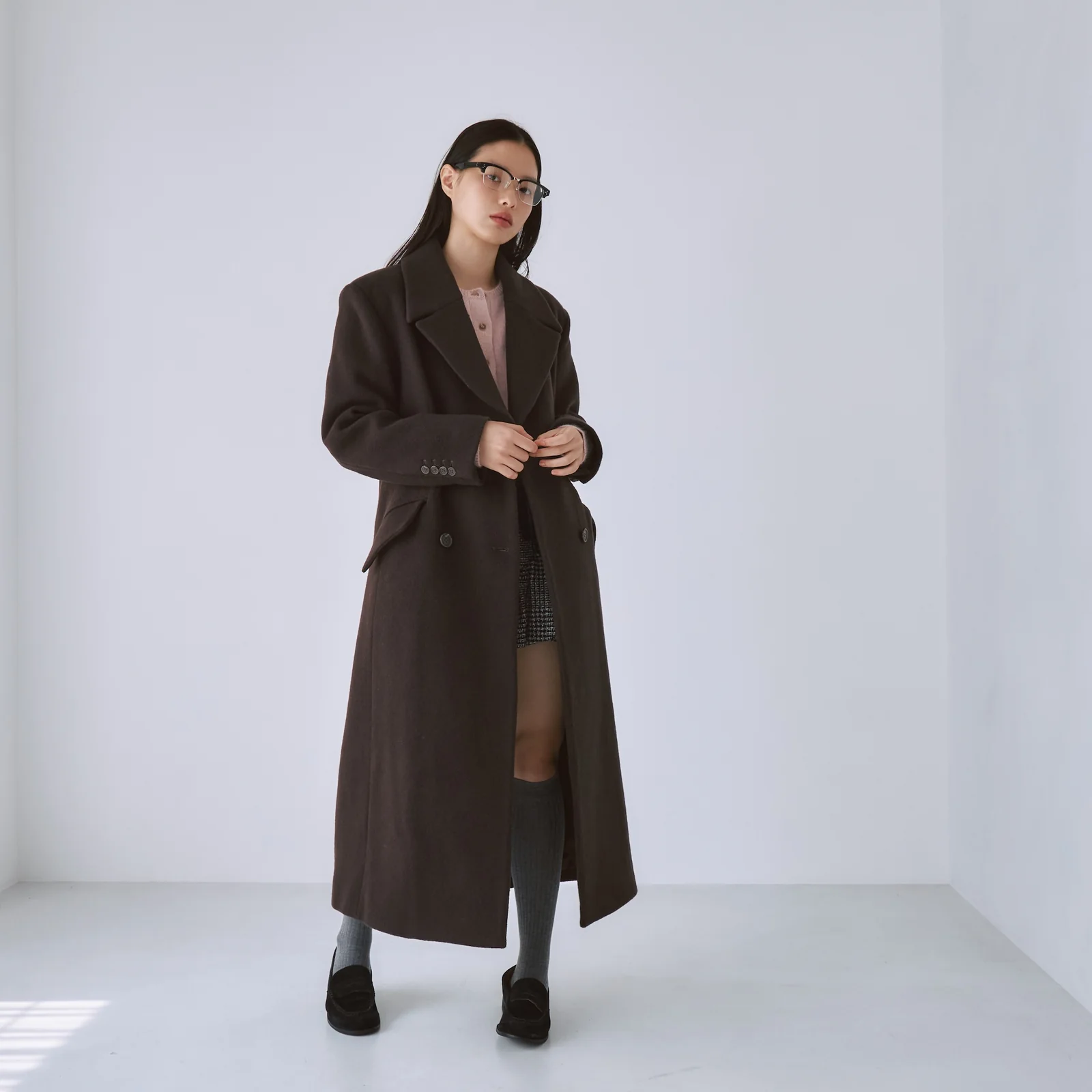 ミニ丈ボトムにローファー合わせのコーディネートならトレンド感が一気に向上。〈Basic Flareボトムス Layeredスカート set〉などボトムにデザインがあるアイテムとの合わせもおすすめです。