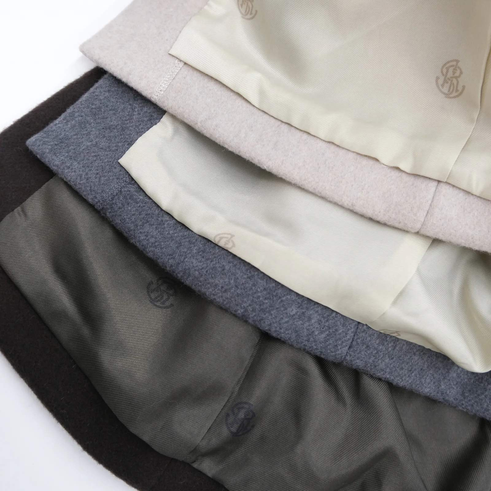 裏地にはオリジナルロゴ入りで、ちらりと見えた時にもアクセントに。ボタンにも同じくロゴ刻印入りの4つ穴ボタンを使用。シンプルなデザインの中に、細部までこだわった特別感とオリジナリティを感じられる要素を盛り込んでいます。