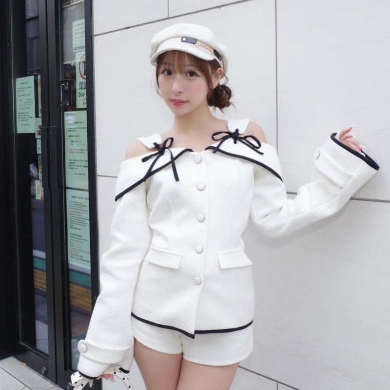 ふっくら立体感のあるツイード×オフショルデザインで、着るだけで主役級の華やかさに♡
