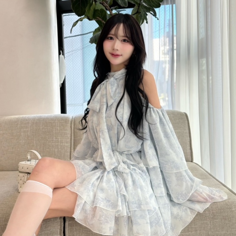 トワルドジュイ柄×エアリーなシフォンが、歩くたびに揺れるドラマティックな“大人フェミニンワンピース”♡