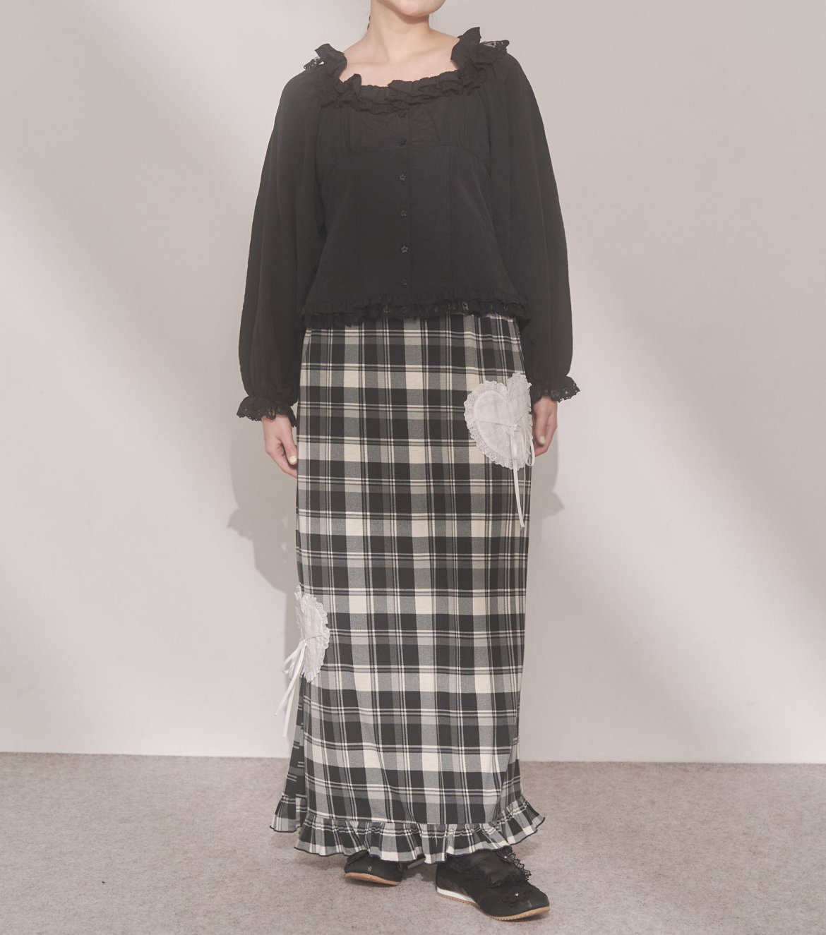 てろんとしたストレッチ生地を使用したチェックスカート。