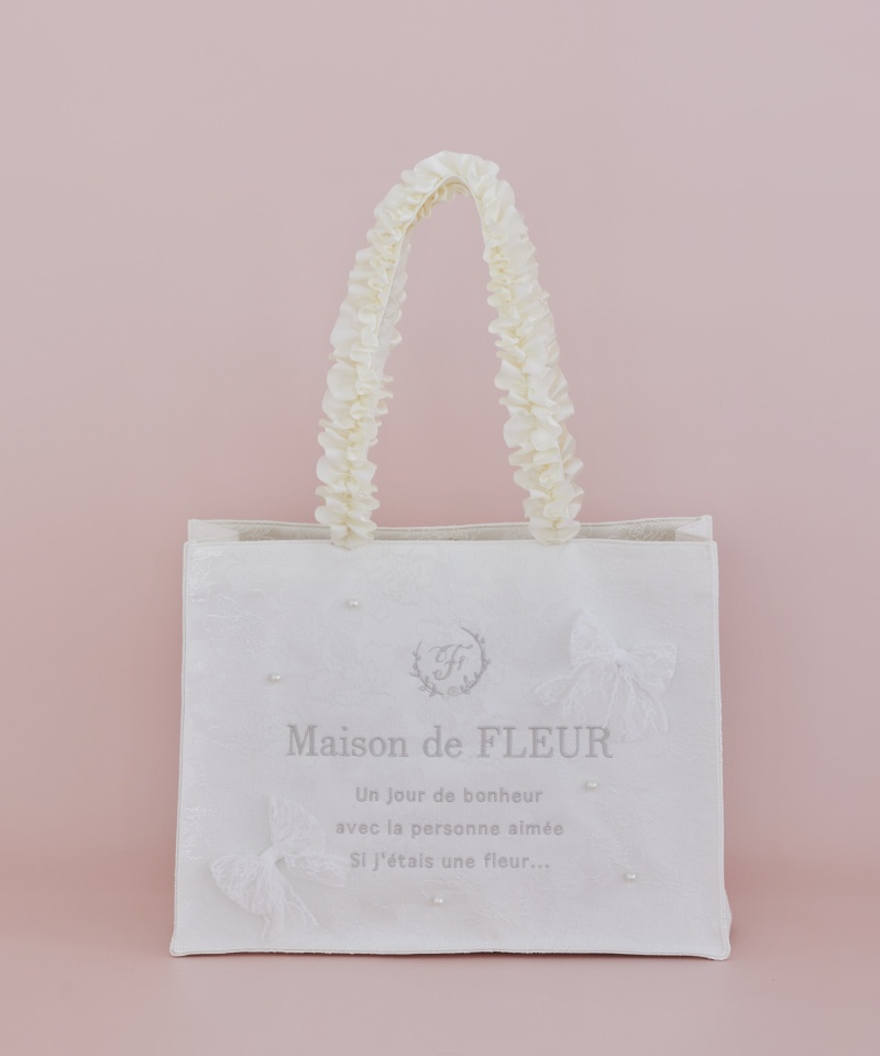 ♦品名:レースリボンフリルハンドルスクエアトートMバッグ