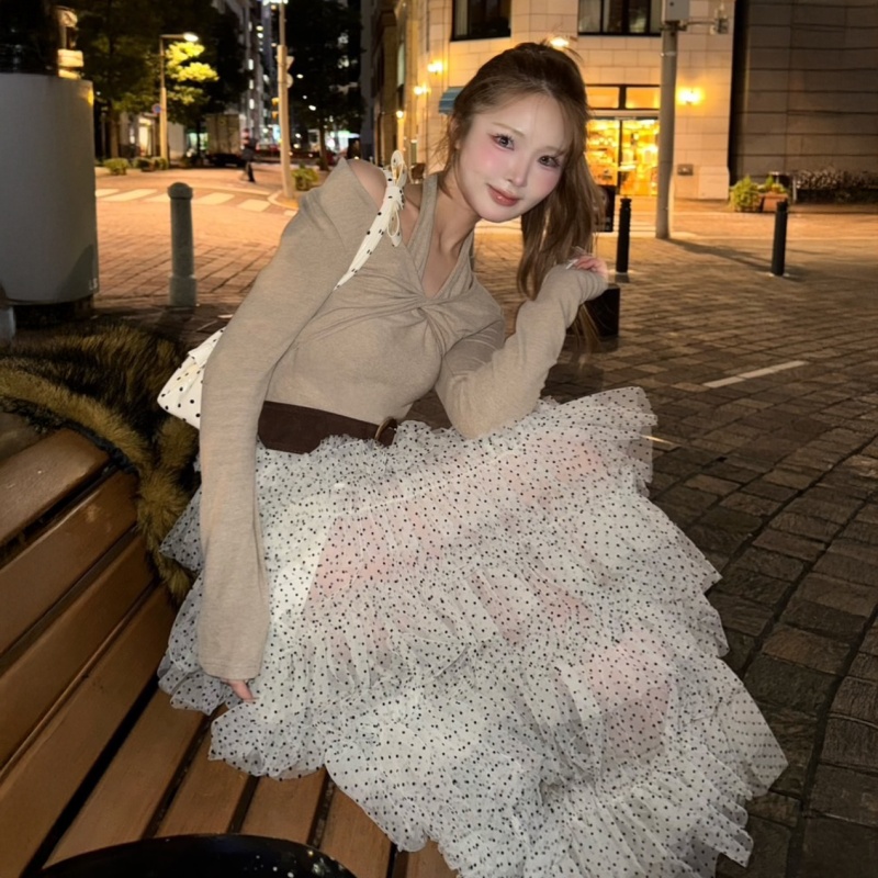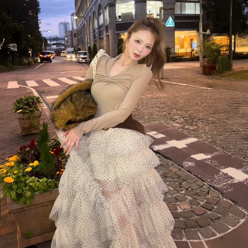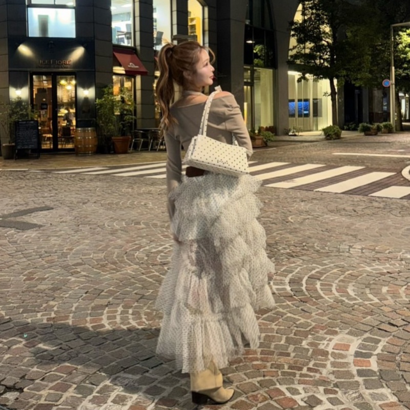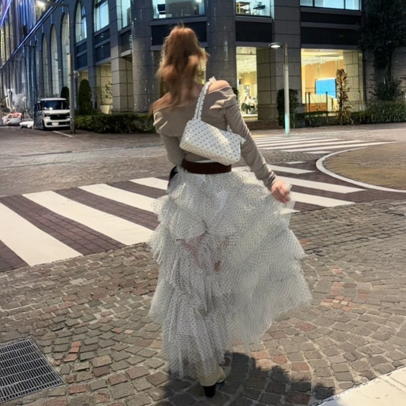 コンパクトトップスと好相性で、ホワイト(ドット)・ブラックの2色展開はデートや特別なお出かけにもぴったり🖤🤍