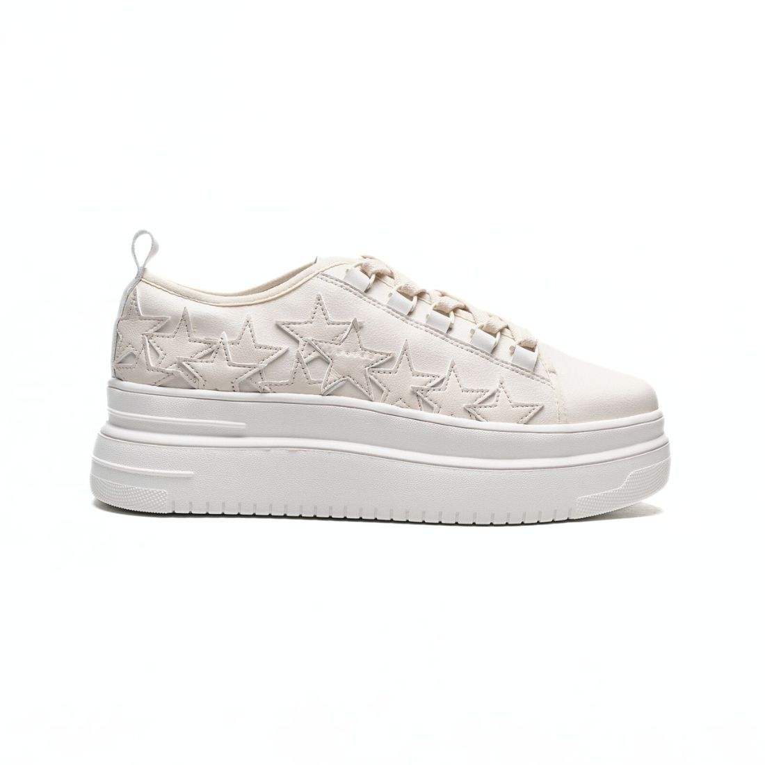 大胆なデザインと洗練されたフォルムが融合した、個性派プラットフォームスニーカー。立体的なスターのディテールが目を引くデザインで、足元にインパクトをプラスします。