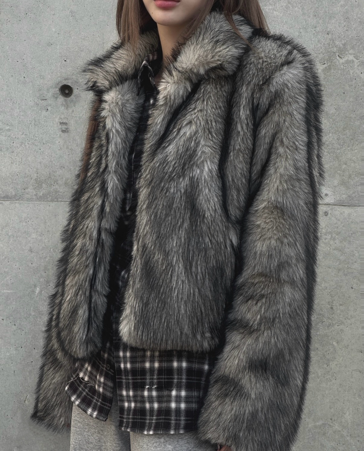 Gray fur short jacket