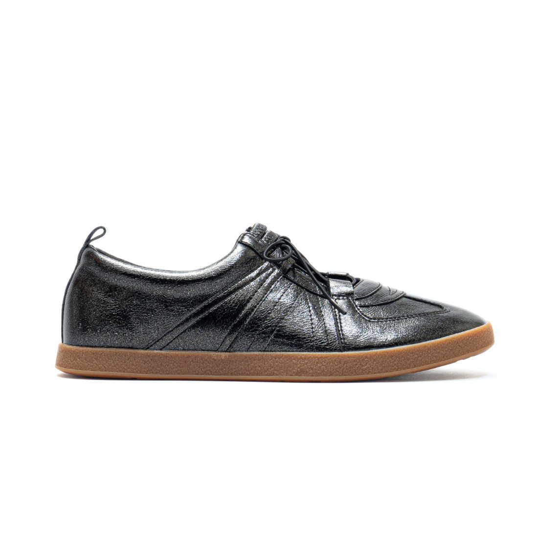 華やかなメタリック素材を使用し、上品さとモダンさを兼ね備えたデザインが特徴の一足。スクエアトゥのフォルムがトレンド感を演出し、スタイリッシュな印象を与えます。