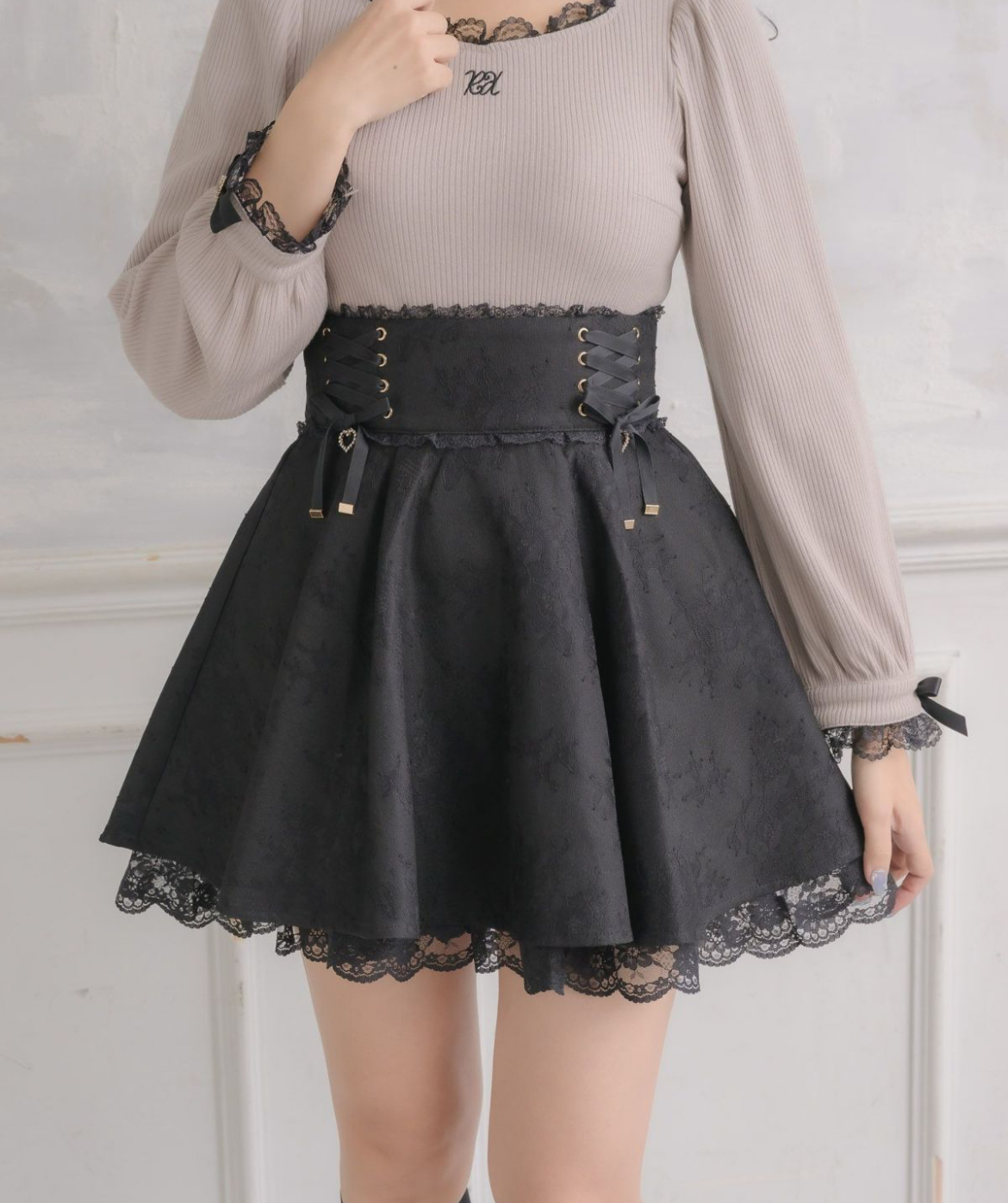 華やかさと立体感を兼ね備えた2段ティアードフレアスカート。レースを重ねたボンディング素材がほどよいハリを生み、タック入りのシルエットが上品なボリュームを演出。サイドのレースアップリボンが、女性らしさと洗練された印象を際立たせます。