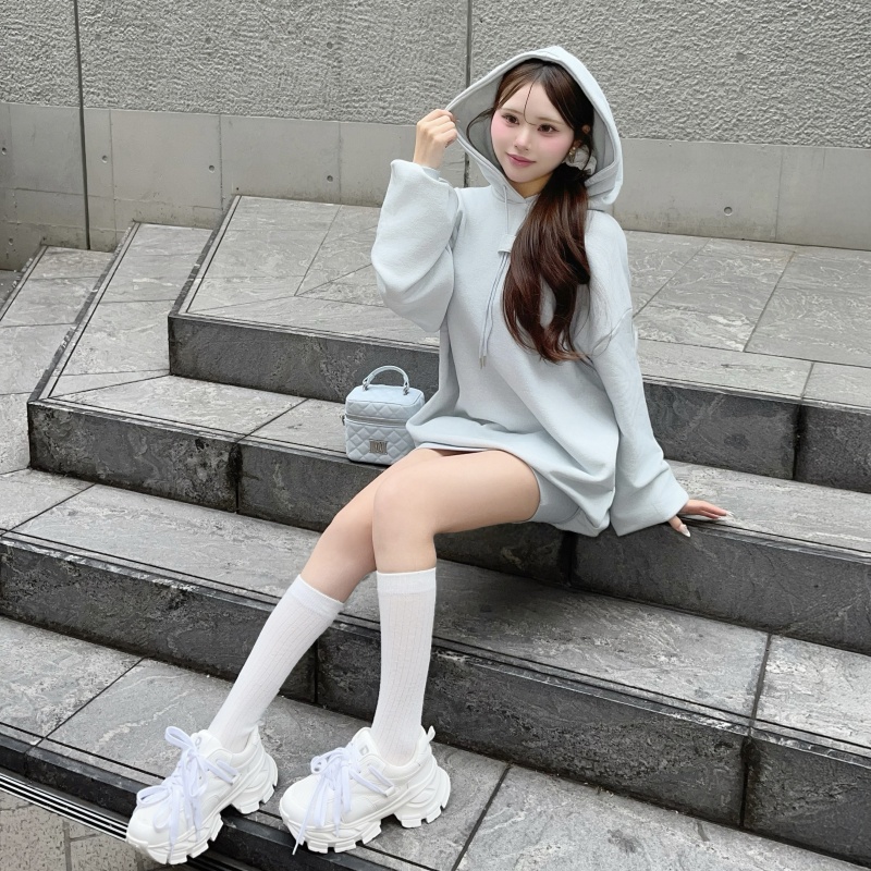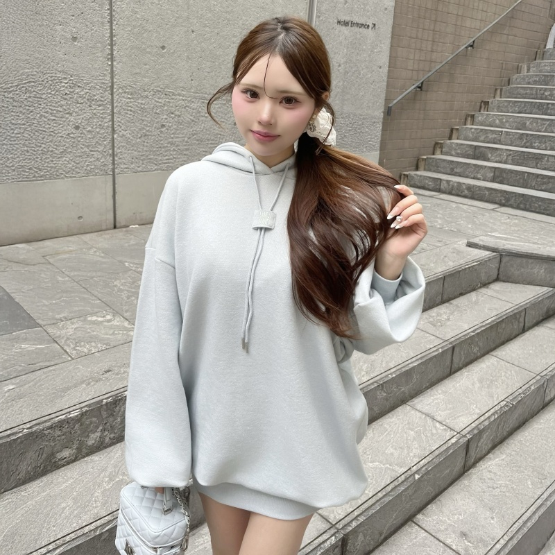 煌めくラメを散りばめたオーバーサイズシルエットで、リラックス感と可愛さを両立したフーディーミニワンピ♡