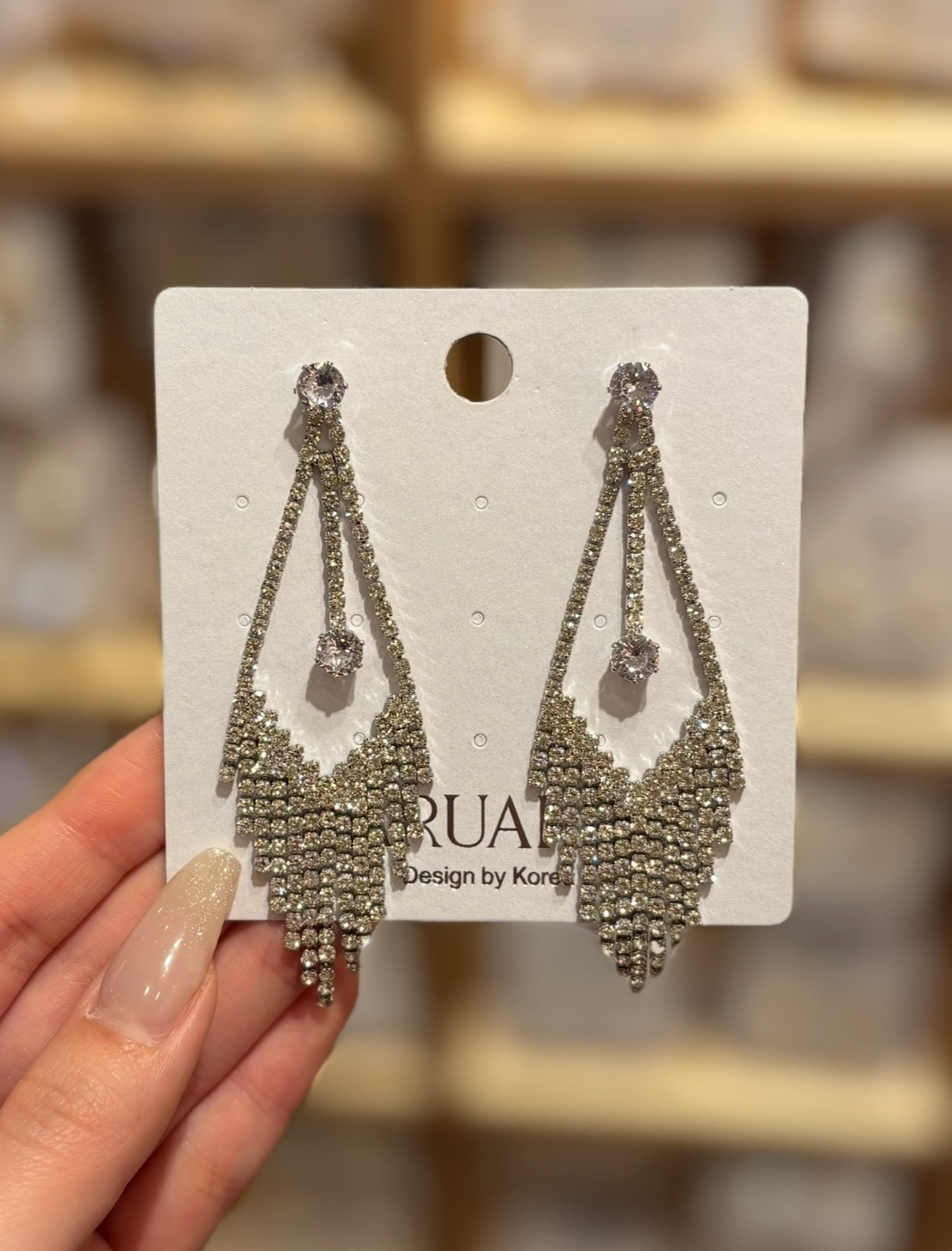 繊細に連なるストーンが揺れる、華やかなロングピアス💎✨