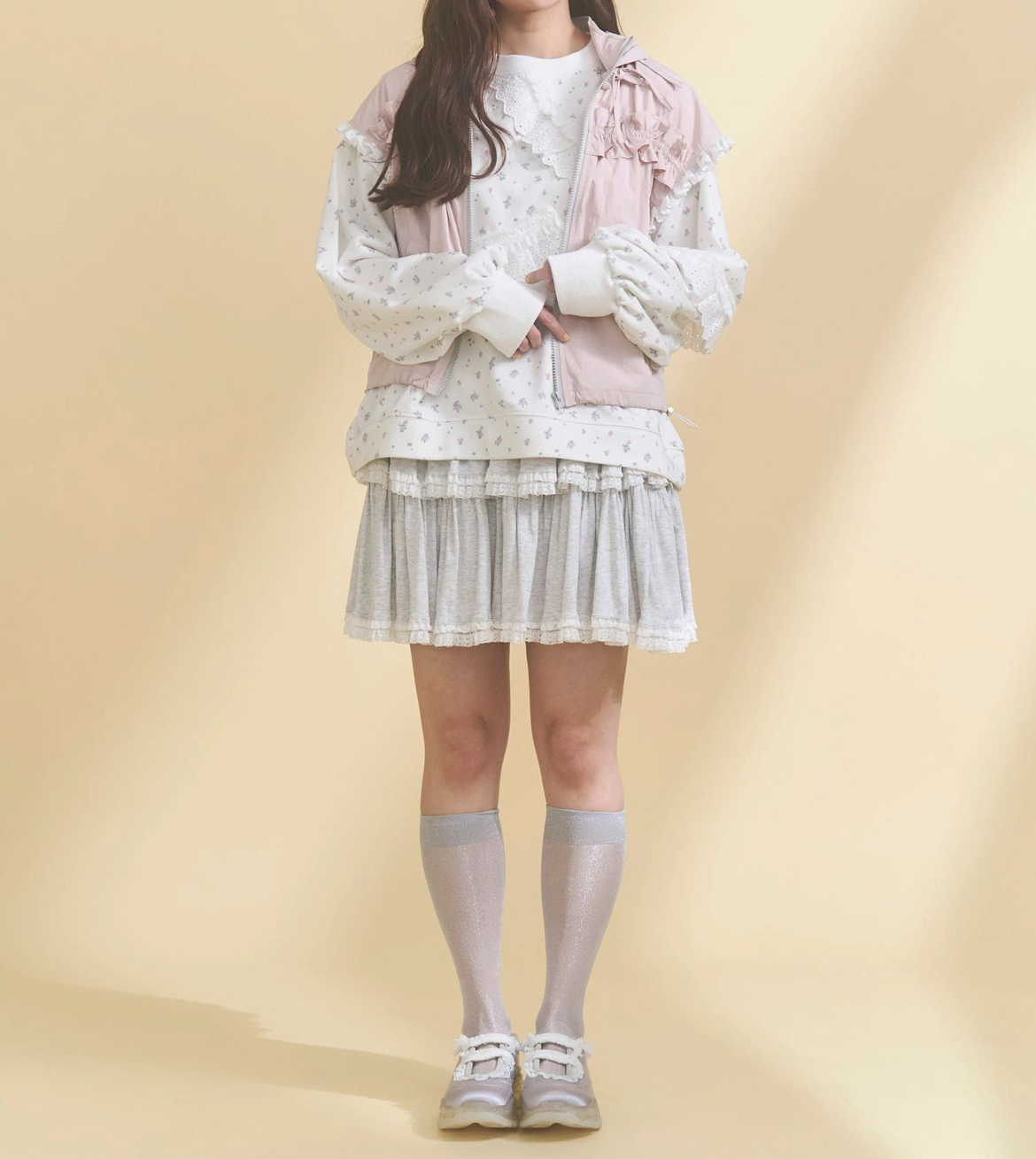 お揃いの花柄のパーカーもご用意▸frill lace puff hoodie