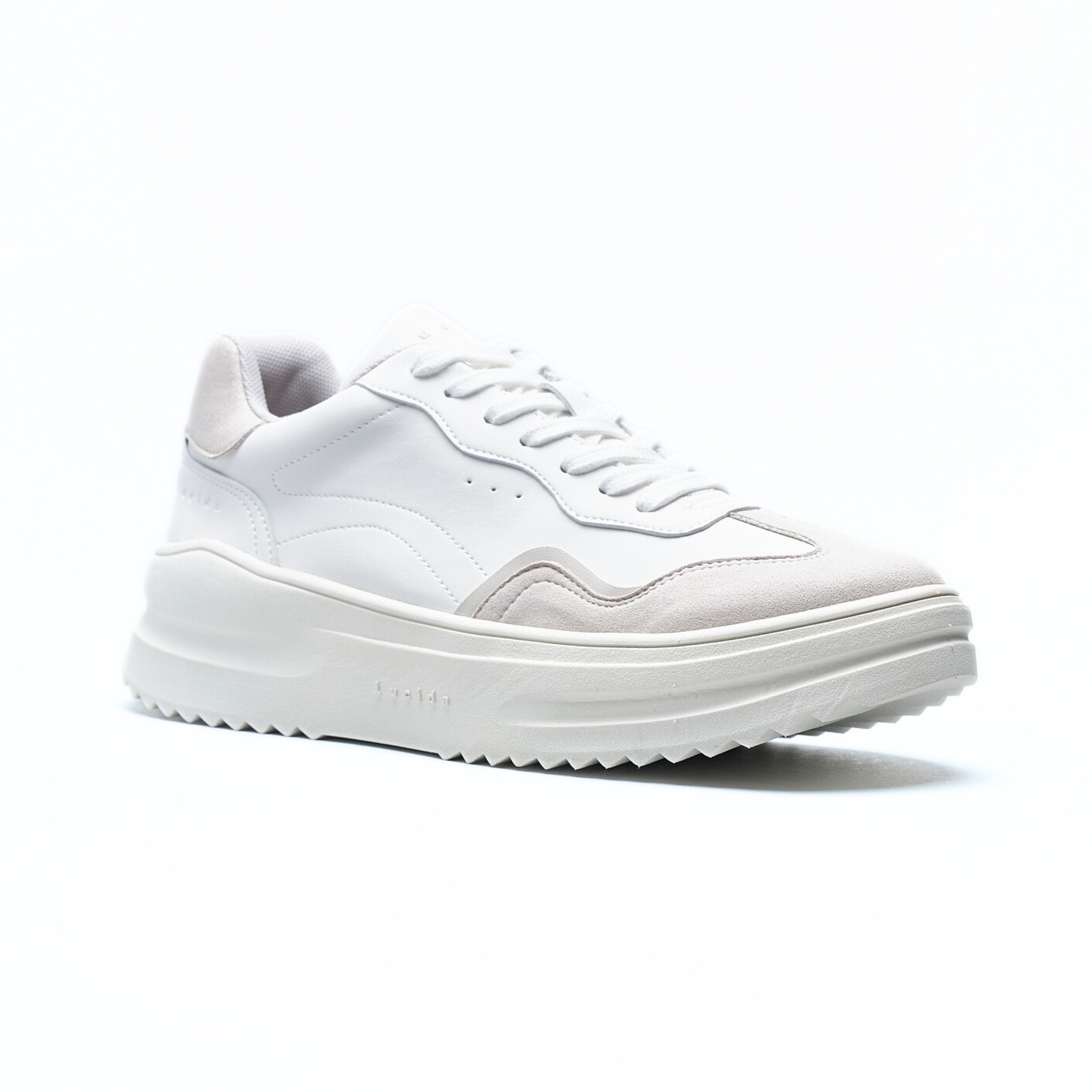 トウ先のワンポイントカラーと、足先がスリムに見える特徴的なカッティングで、定番を抜けて旬顔な見た目も気分も新鮮さをプラス。軽量のプラットフォームだから、長時間ラクしながらもスタイルアップも叶うのも魅力的。ソールのサイドにはロゴを入れ、特別な1足に仕上げました。