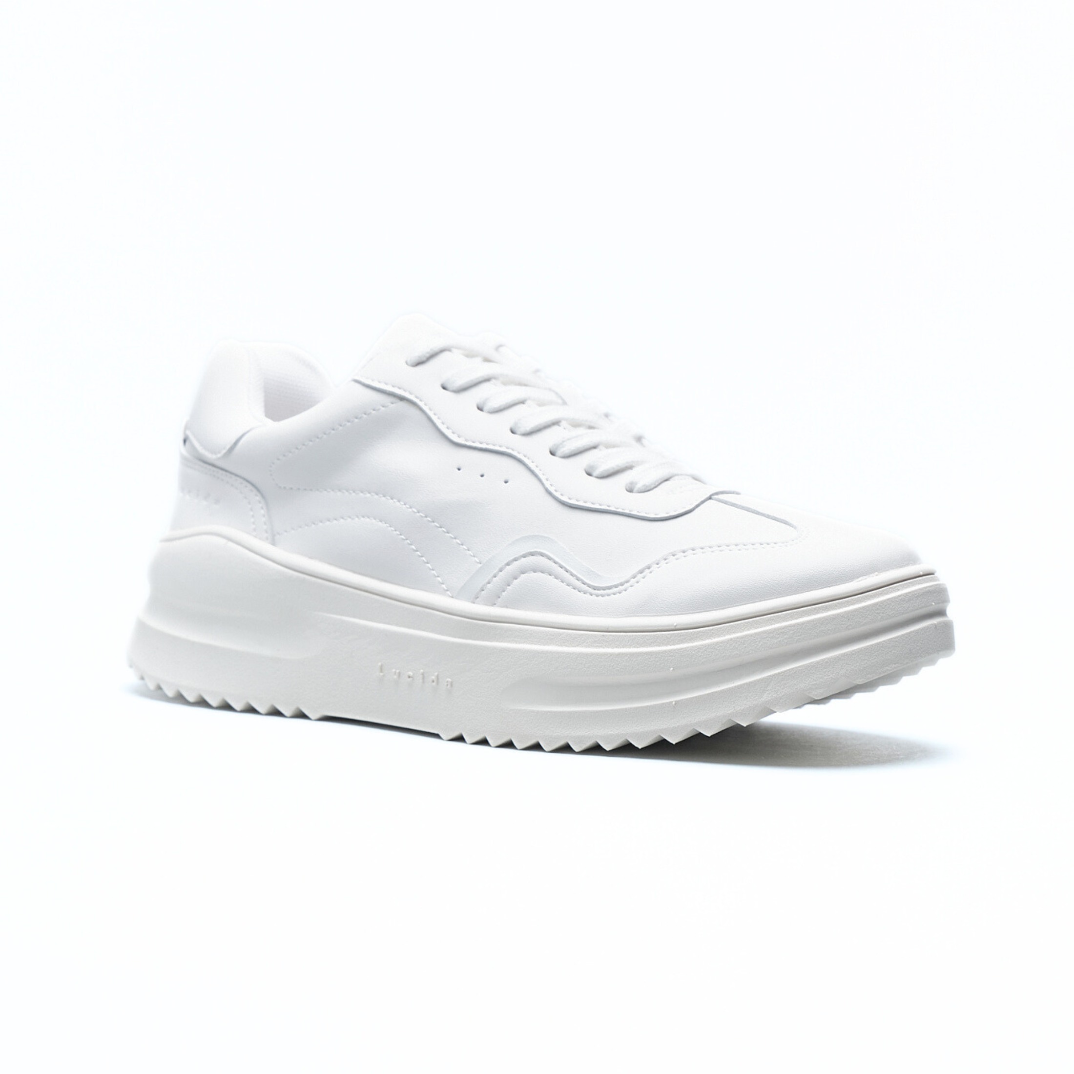 白ベースの爽やかなカラーがカジュアルさを抑え、大人の女性のデイリーコーデに気軽に取り入れれる1足。