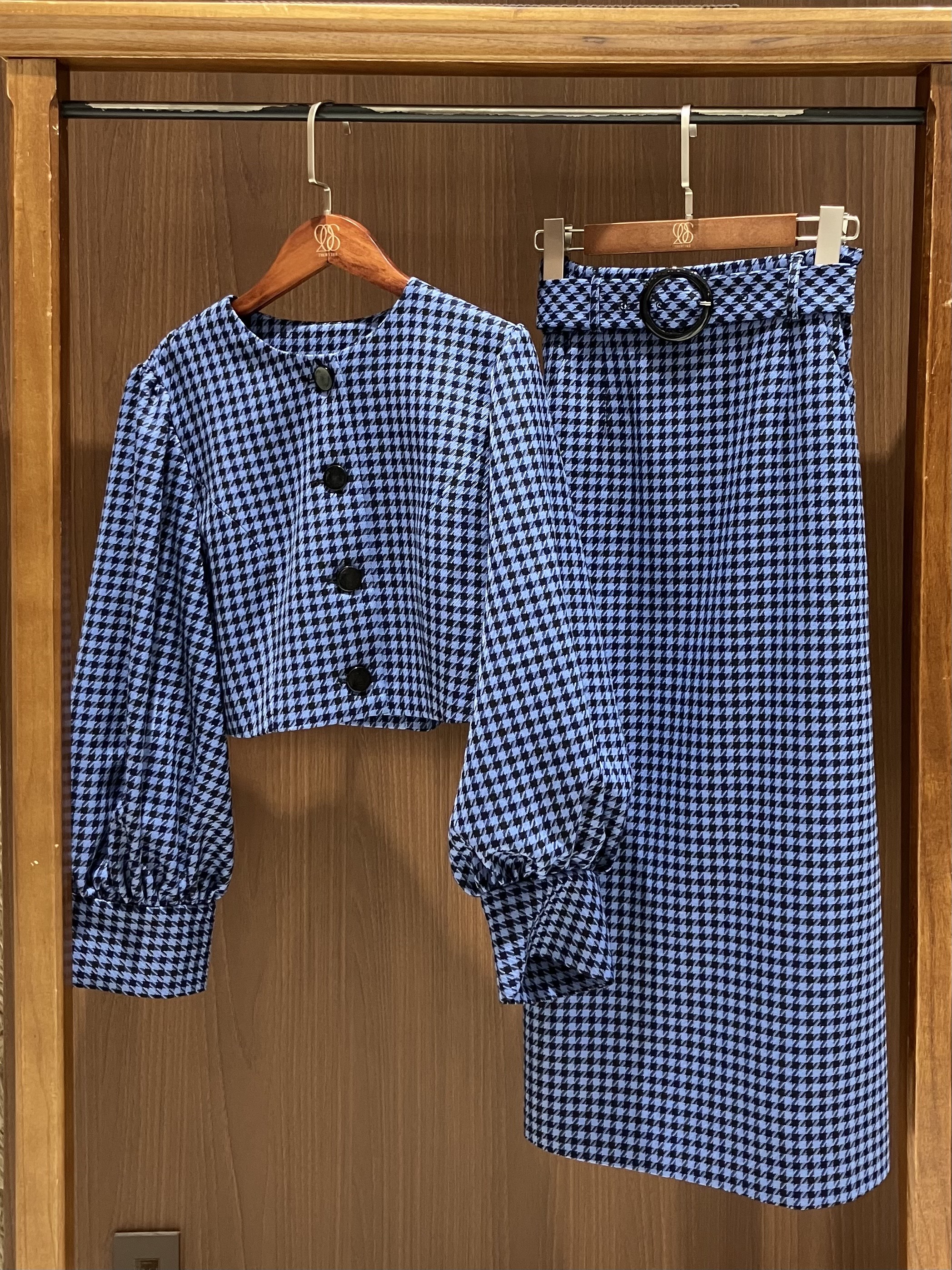 トップスには襟がないので、シャツブラウス等と組み合わせて