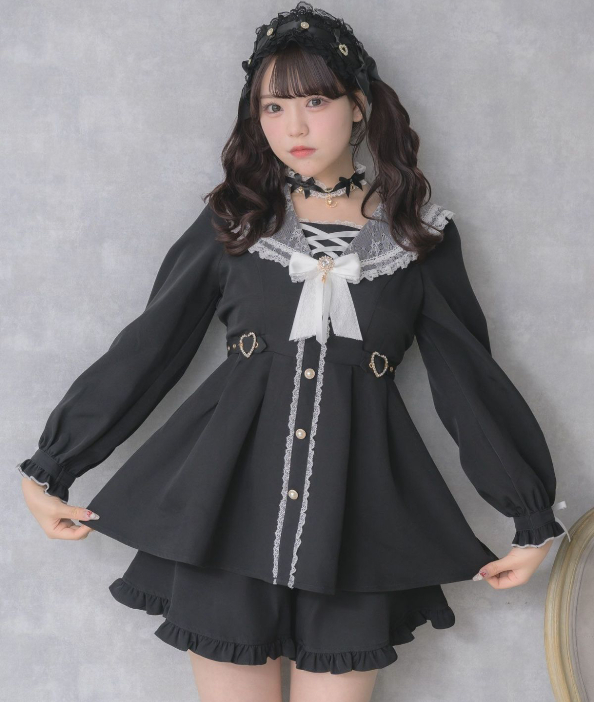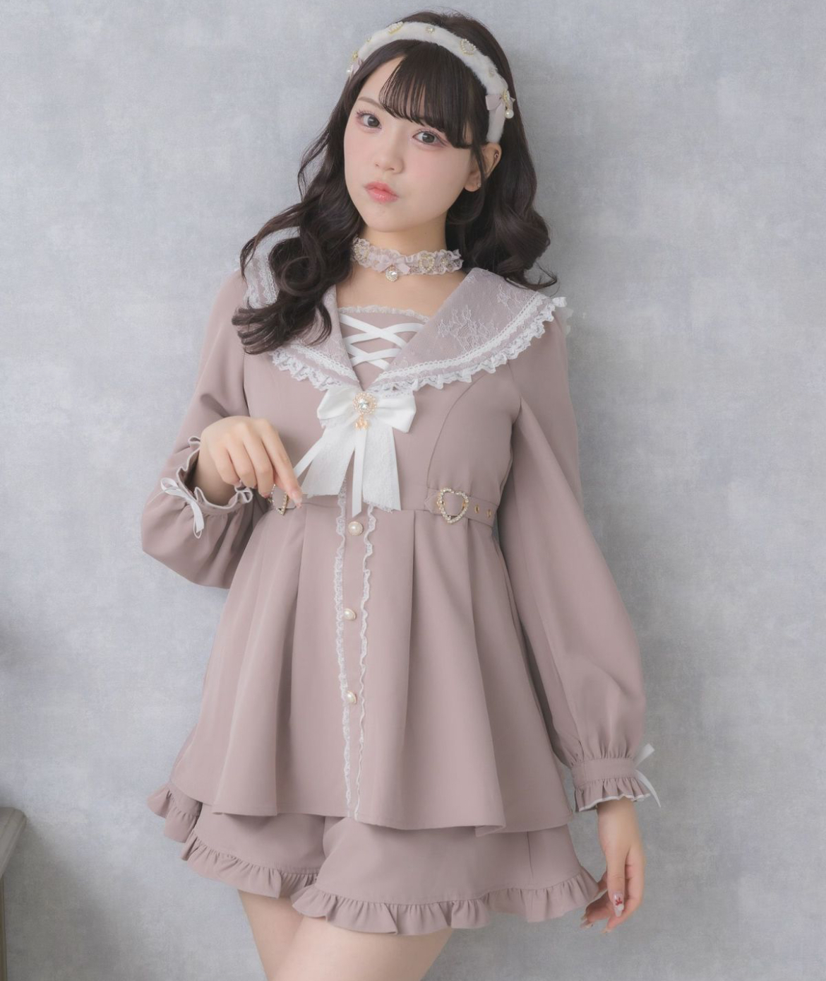 レース配色のセーラー衿でガーリー度120%♡繊細なレースをあしらったセーラー衿が、顔まわりを華やかに魅せてくれます。王道ガーリーなピンク、大人可愛いブラック、トレンド感たっぷりのチェック、どのカラーもコーデの主役になる可愛さです。メリハリのあるトップスと、ふんわり広がるボトムのシルエットでスタイルアップ効果も抜群◎甘さの中に上品さを感じる、ROJITAらしいときめきセットアップです。
