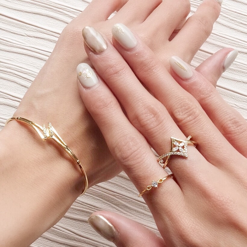 華奢なラインの上品なバングル。 中心に立体感があり、さりげないアクセントに。 エレガントな印象で、フォーマルにも合わせていただけます。