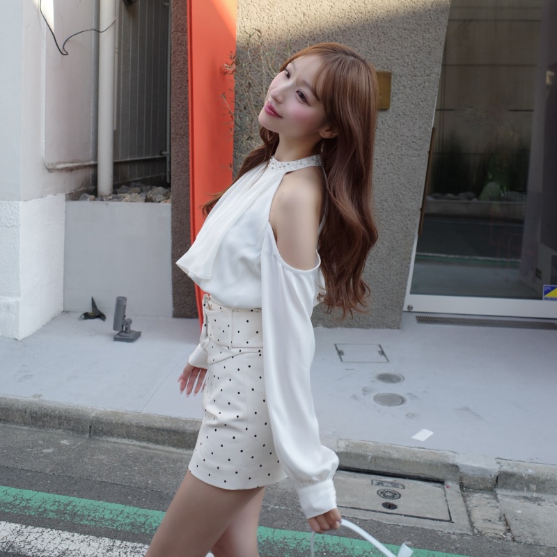 アメスリラインが肩やデコルテをすっきり見せ、華奢見えと上品さを同時に叶えます♡