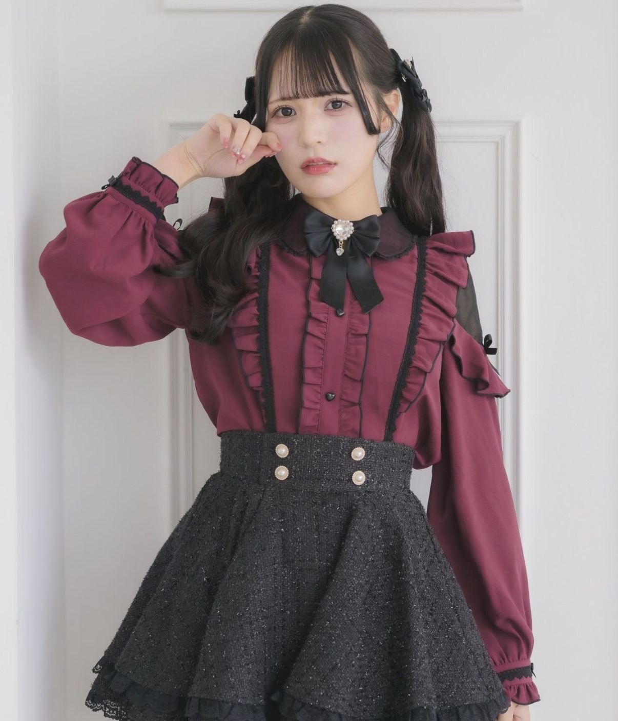 ラッフルとレディライクなディテールで甘さをプラス♡ メロー配色との相乗効果で縦ラインをすっきり見せ、旬な女の子らしいシルエットに。カラバリ豊富な4色展開でお気に入りの一枚が見つかるブラウス♪ ボタンもハート型でとことん可愛さをON。