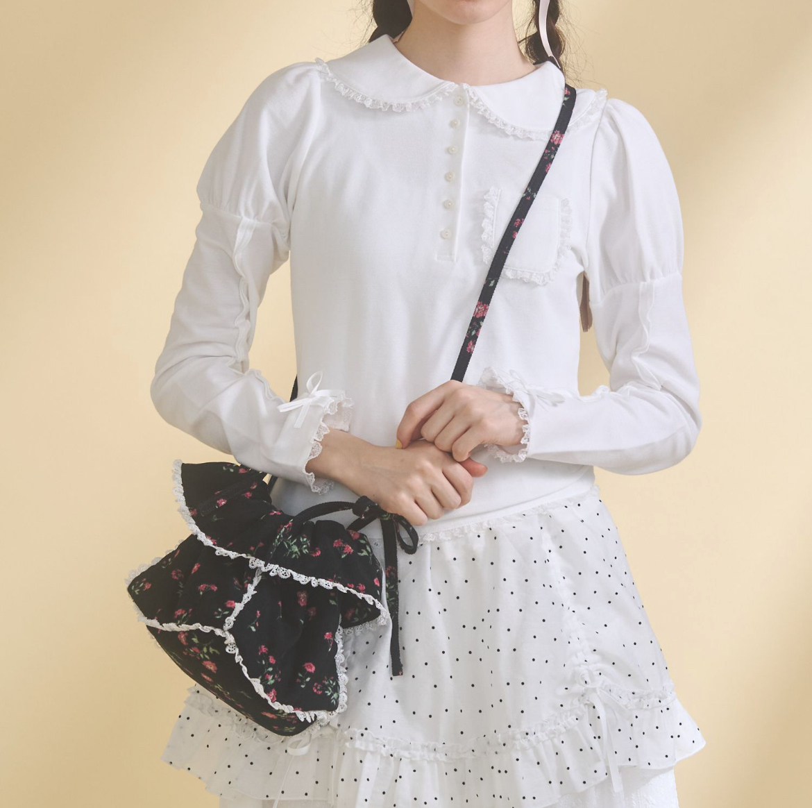 春の風を感じる小花柄のスクエアポシェット。