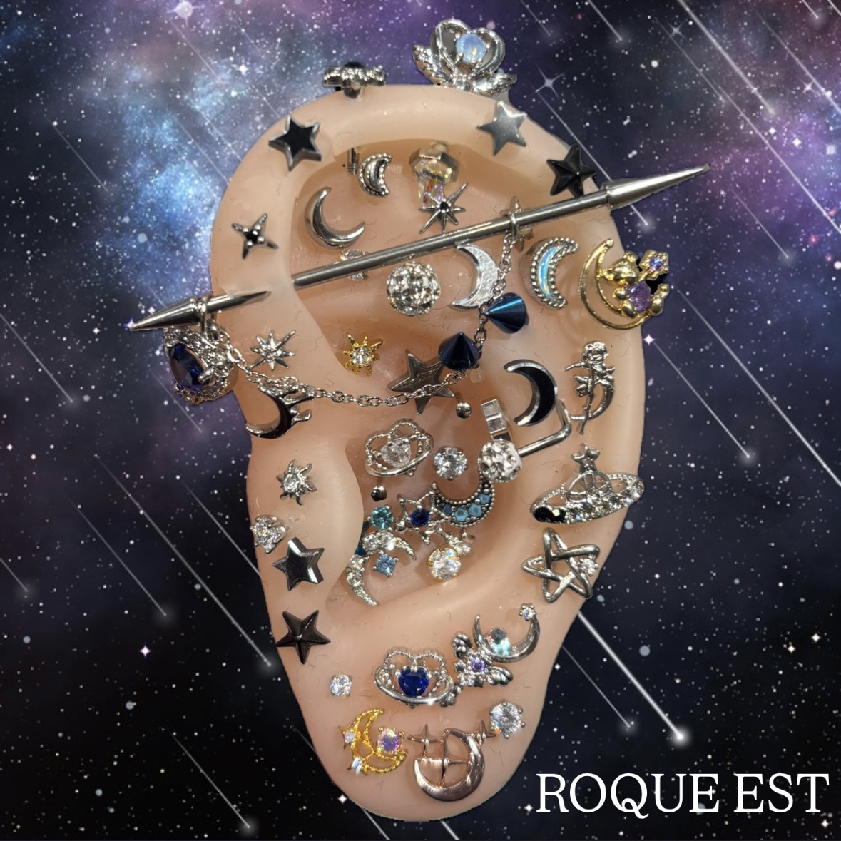 こんにちはロキエスト店です!今日のコーデは夜空コーデです🌌星や月のモチーフをつけて夜空をイメージしました🌟