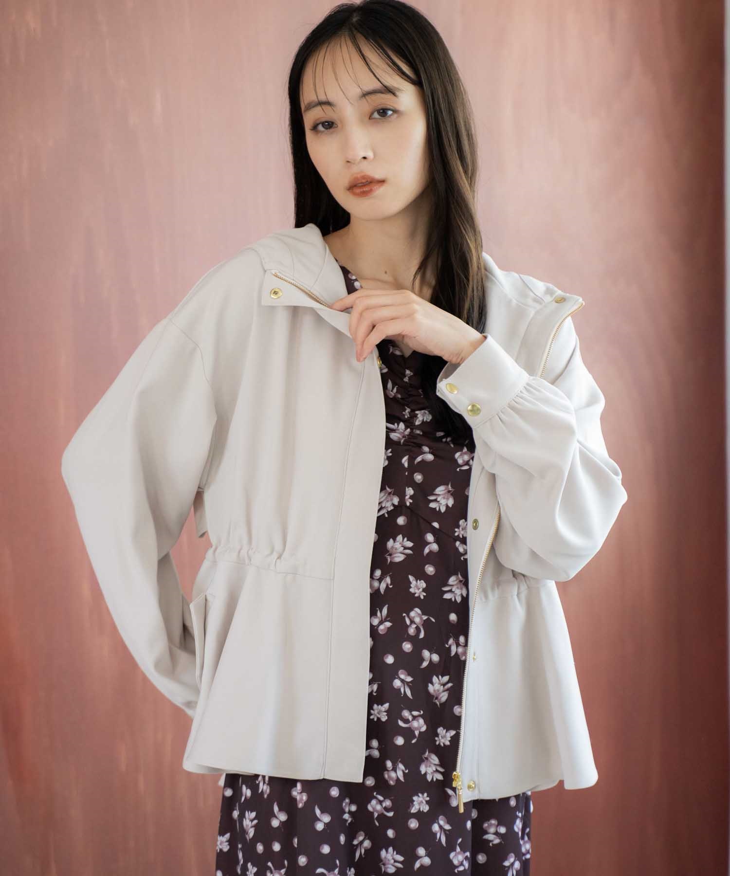 サラリとした着心地のマウンテンパーカー。 ウエストはドロスト仕様でシルエット調整ができ、スタイルアップ効果も◎ フード付きで小顔効果もあり、季節を問わず長く活躍する1着です。