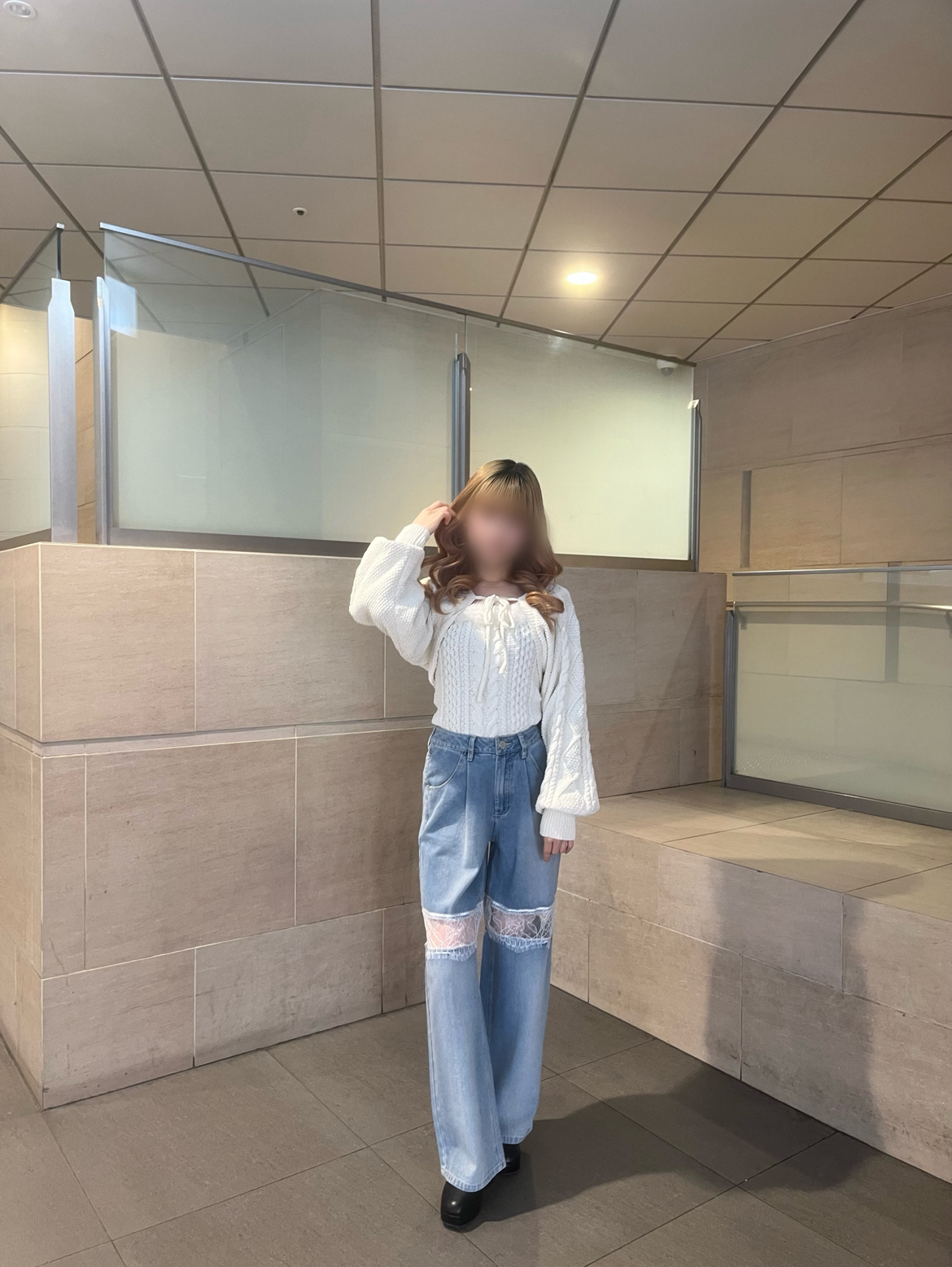 透け感: なし(編み目の隙間から少し中が見えます)
