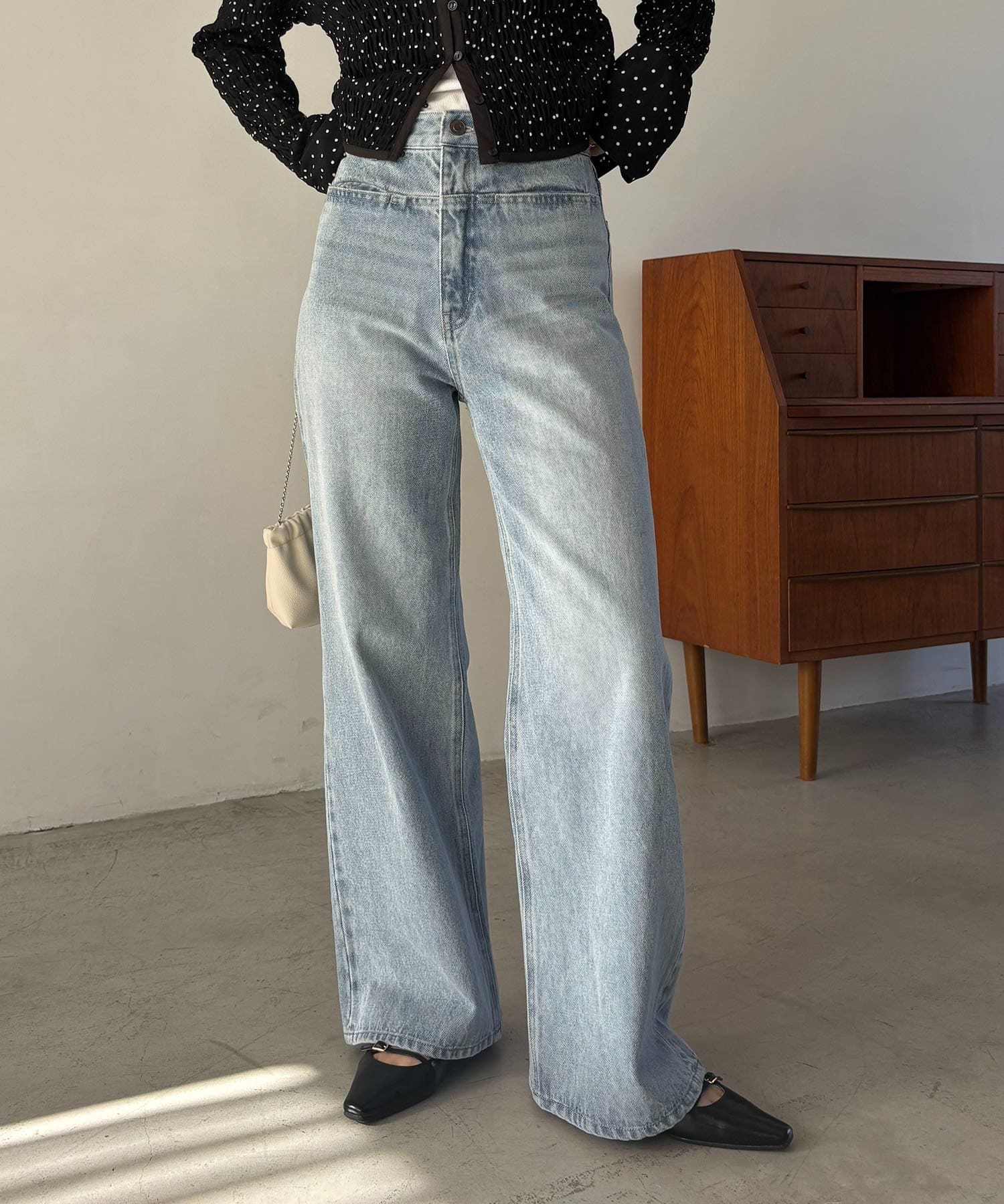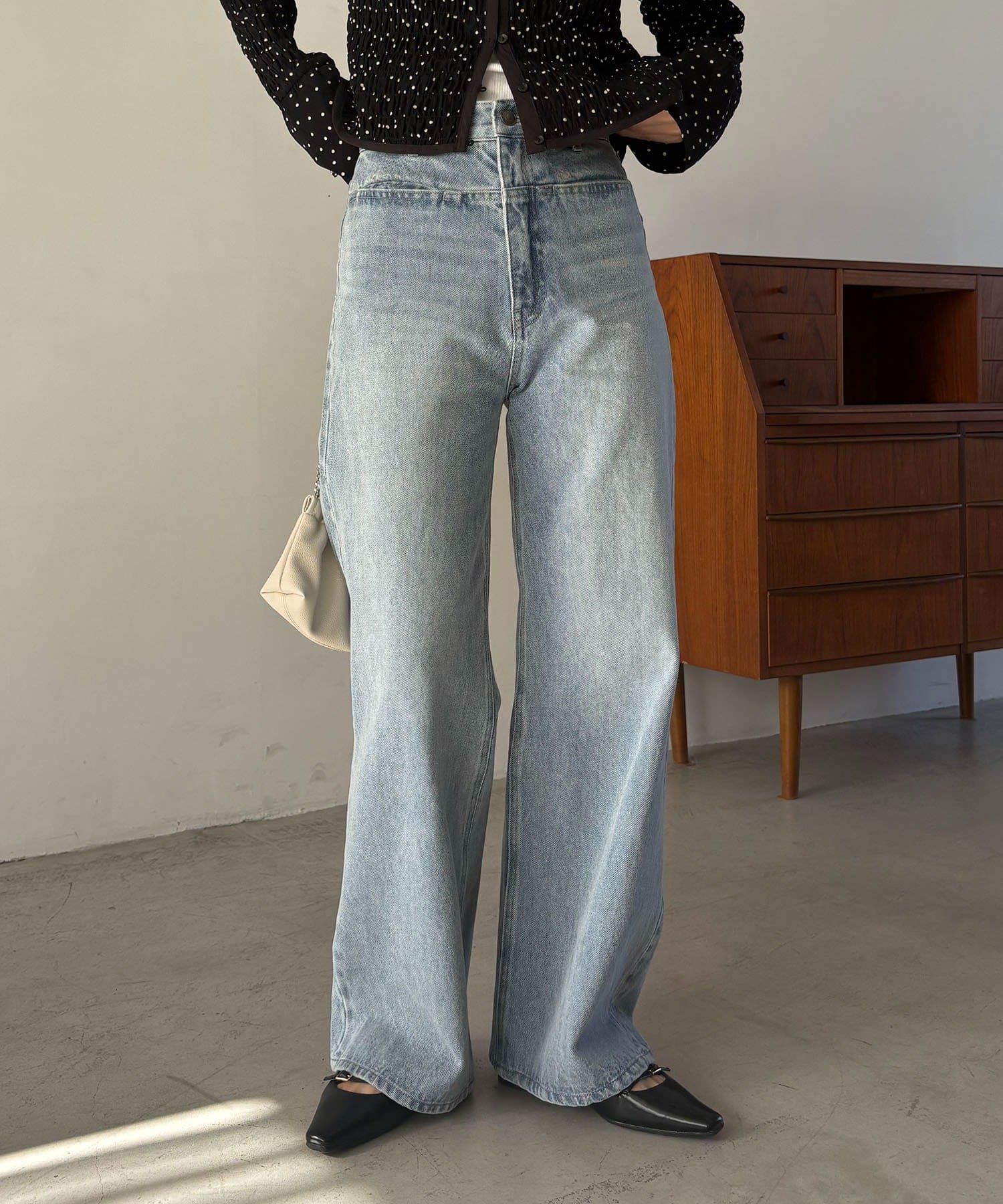 すっきりしたヒップからややワイドに広がったシルエットがビンテージ感をプラス