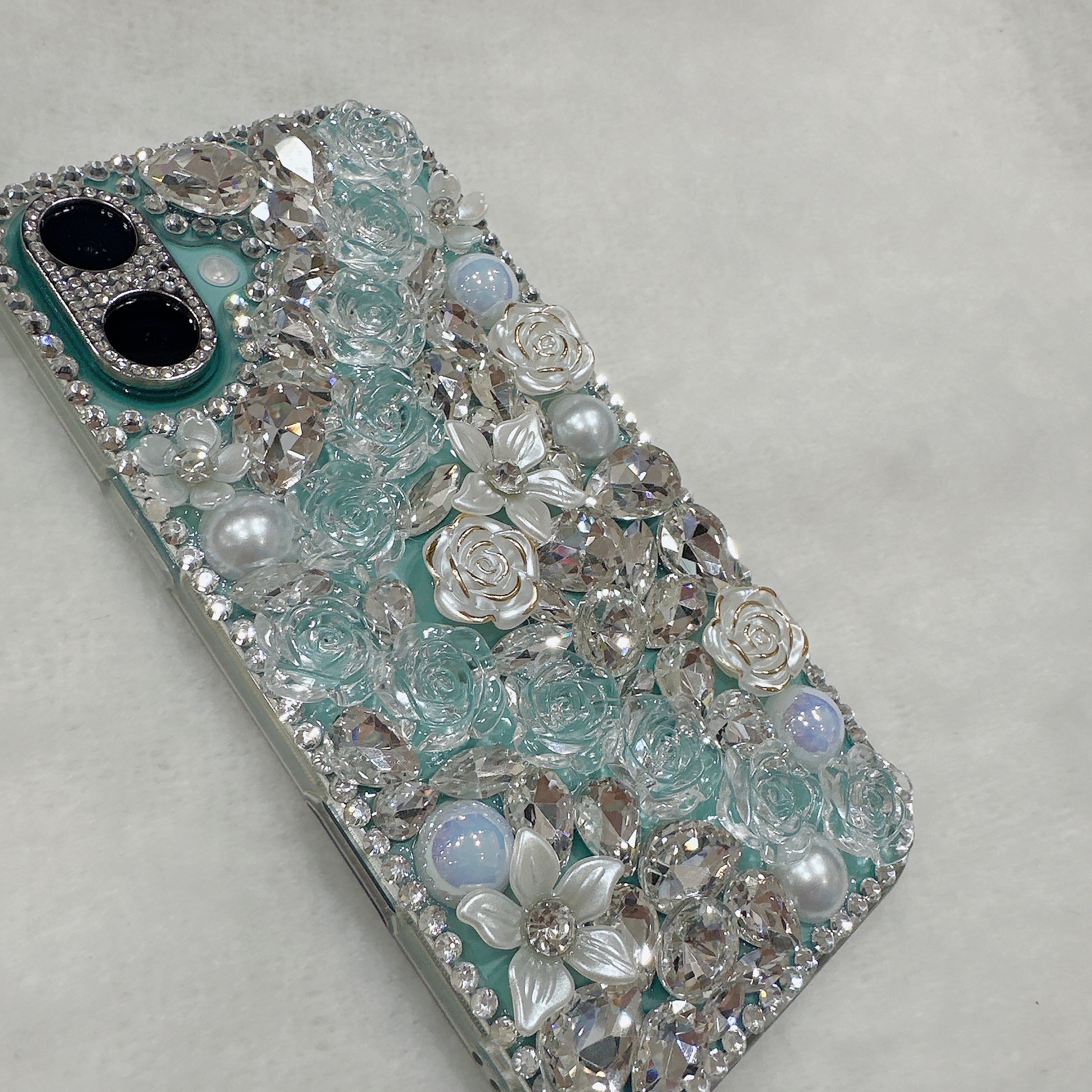 中央のお花がとっても可愛いキラキラケースの