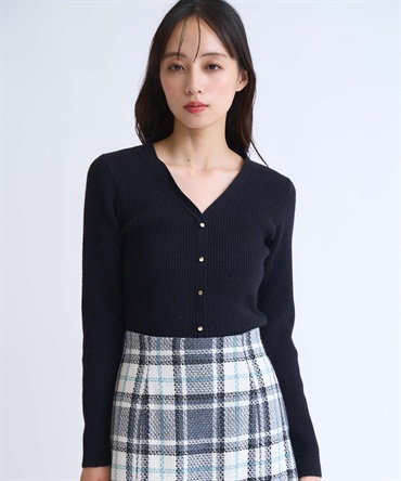 身体にほどよくフィットするシルエットと、ゴールドボタンのさりげない輝きが女性らしさを引き立てます。