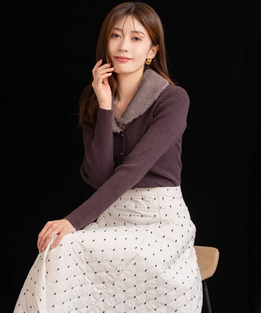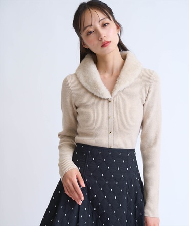フェイクファーの襟が華やかなアクセントを添えるニットトップス。