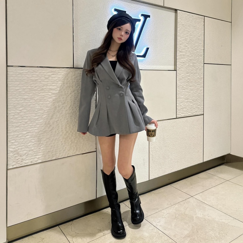 立体的なパネルシルエットとフロントタックが、唯一無二の美ラインを描く主役級ジャケット✨