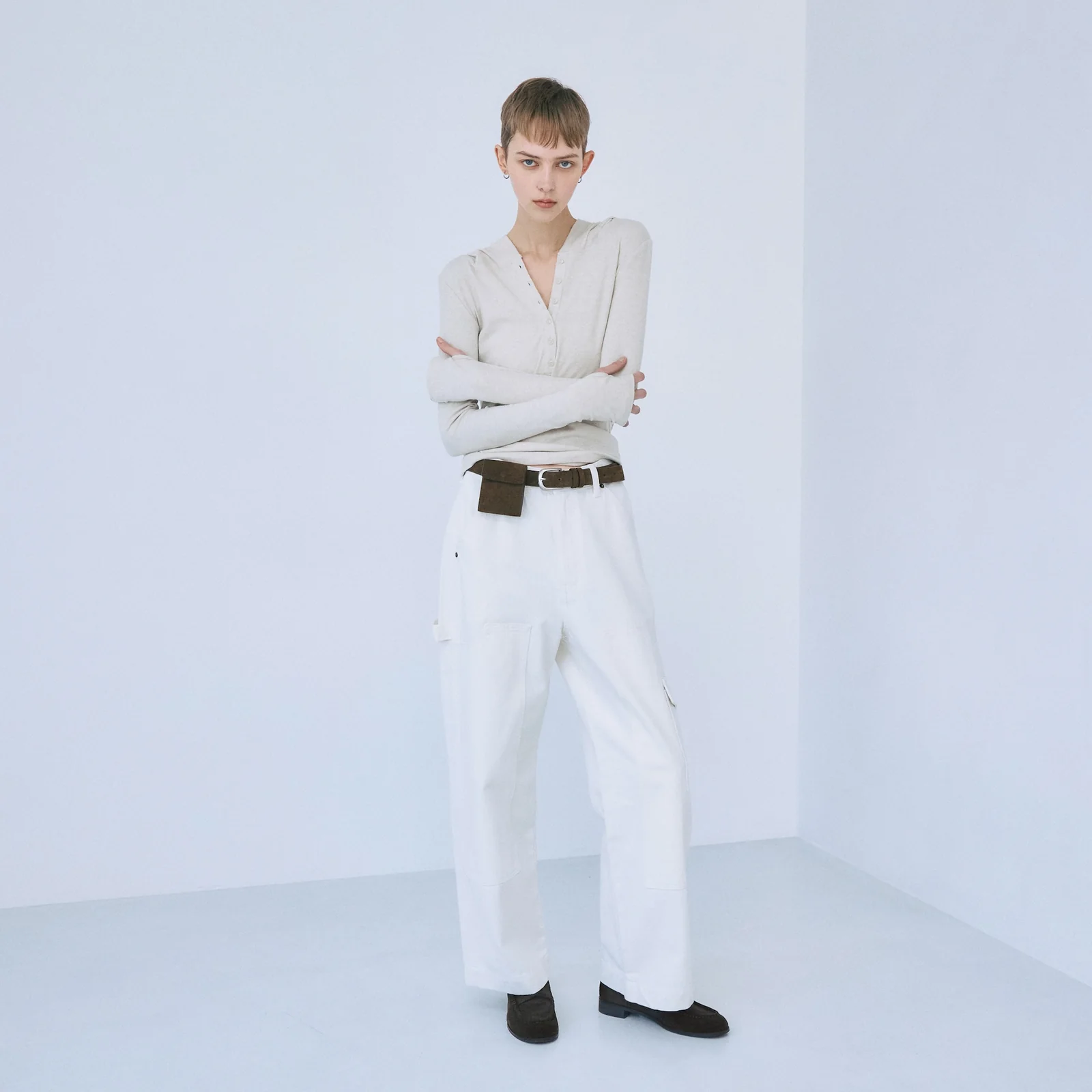 太ももから裾にかけてすとんと落ちるルーズストレートで、ダブルニーやハンマーループなど無骨なディテールを洗練して取り入れた1本です。