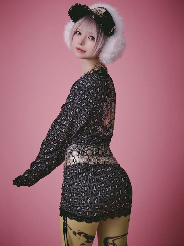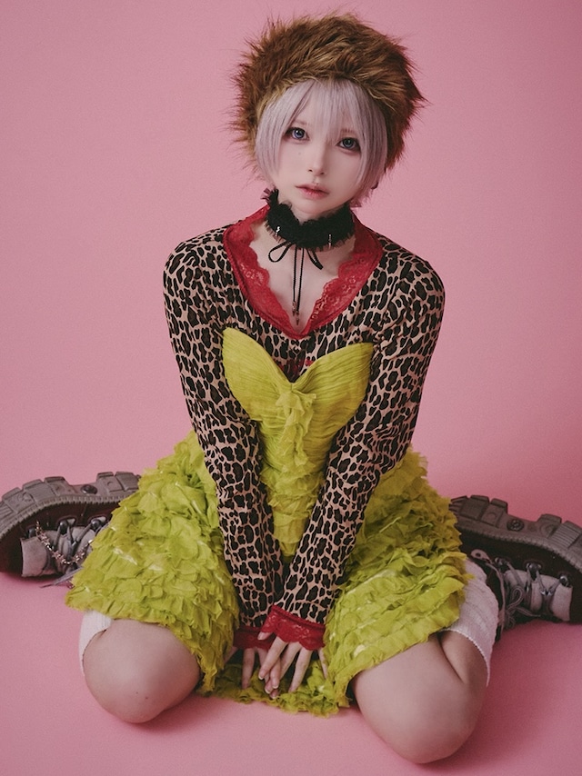 首元や袖に付いたレースとレオパード生地が、ギャル可愛さを引き立てる一着!
