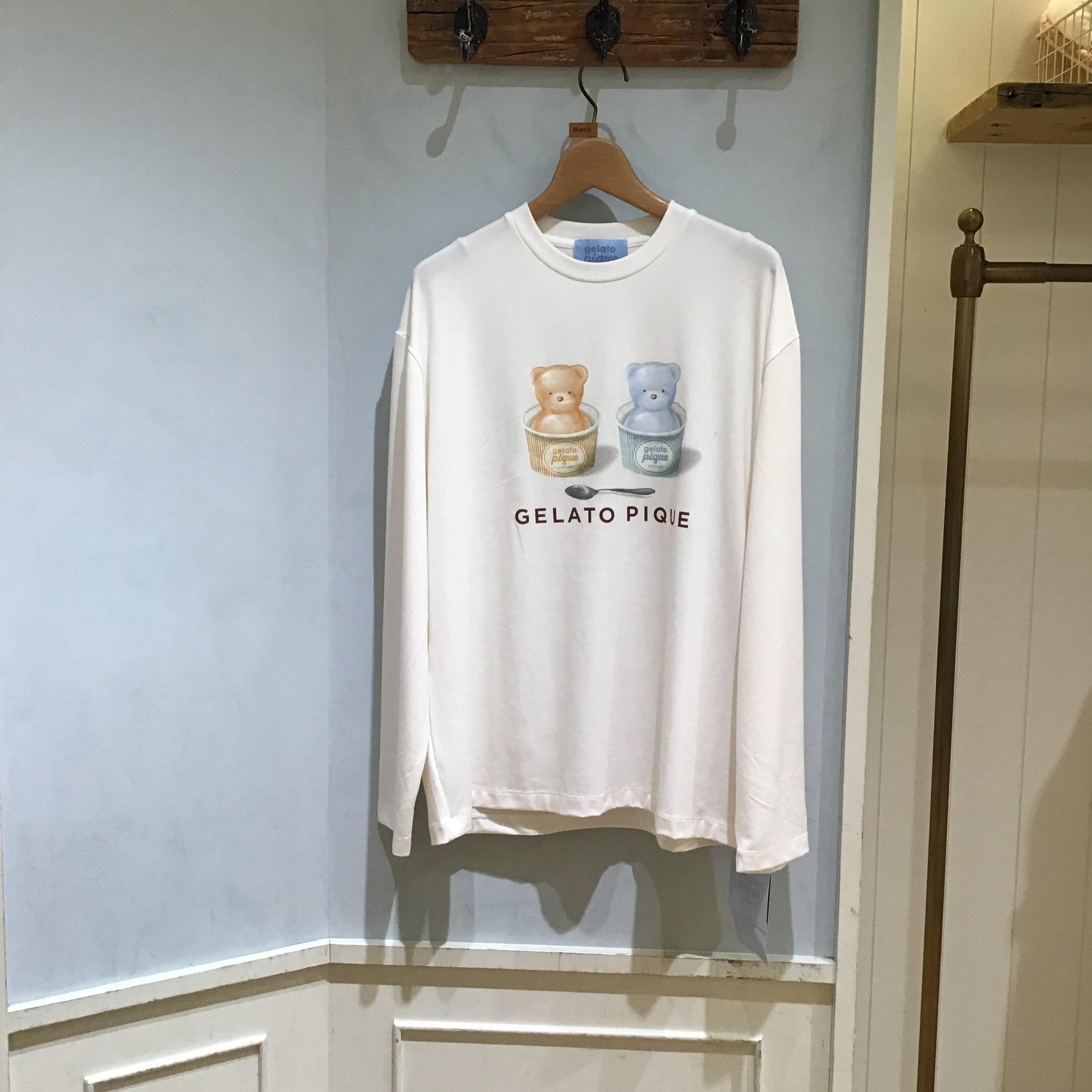 ベアやハート形のアイス、チョコレート味のアイスをプリントしたバレンタインならではのHOMMEサイズ総柄シャツです。