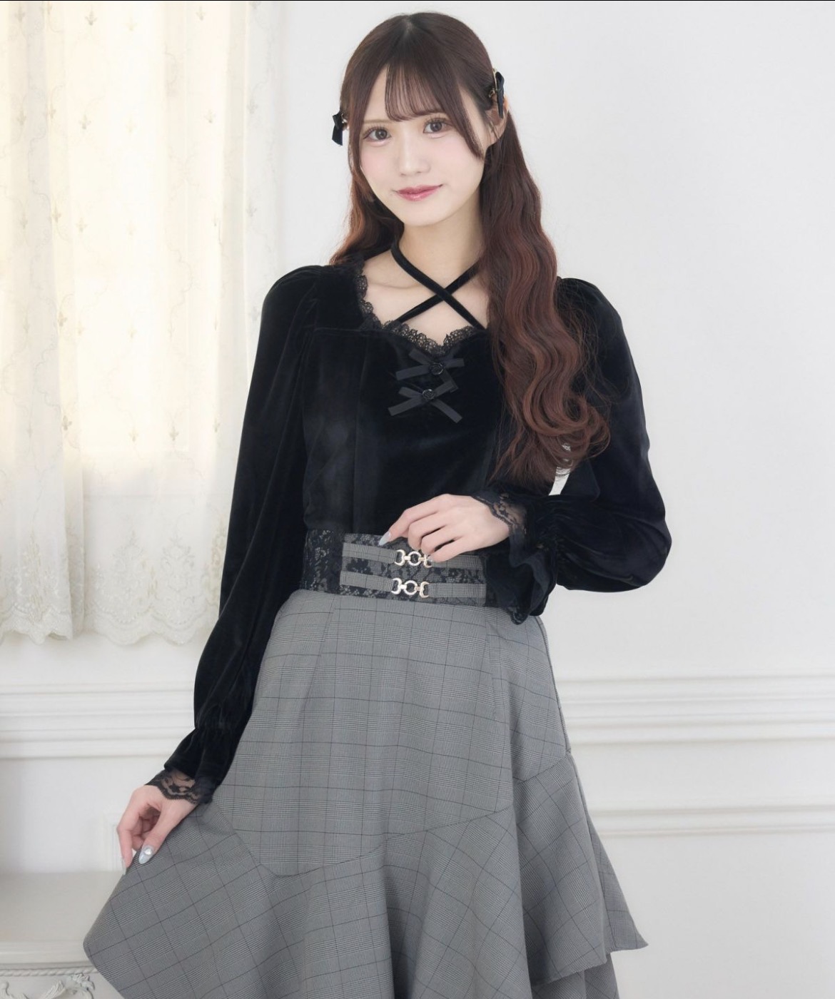 上品な光沢感のあるベロア素材が魅力の、シンプルなワンカラートップス。胸元の切り替えデザインがさりげなくレディな雰囲気を演出します。ローズ釦がポイントになり、デコルテを華奢見えさせてくれるのも◎主張しすぎないデザインなので、幅広いコーデに取り入れやすい一枚です。