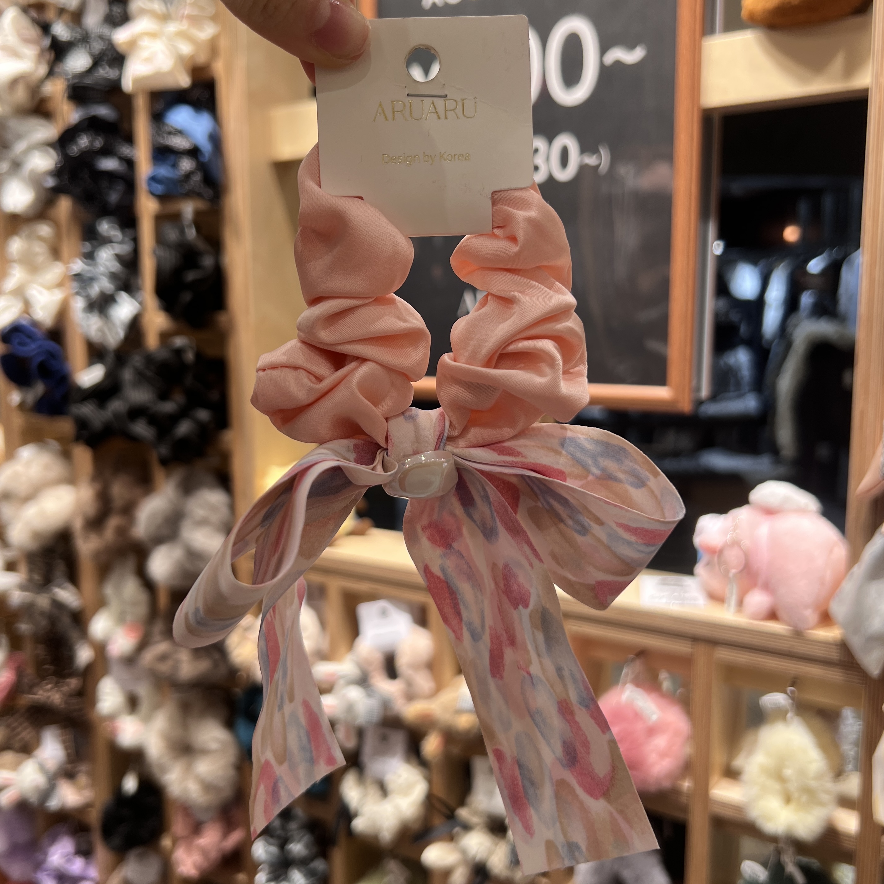 上品な光沢感のあるサテンシュシュに、軽やかなシフォン素材のロングリボンを組み合わせたシュシュです💖