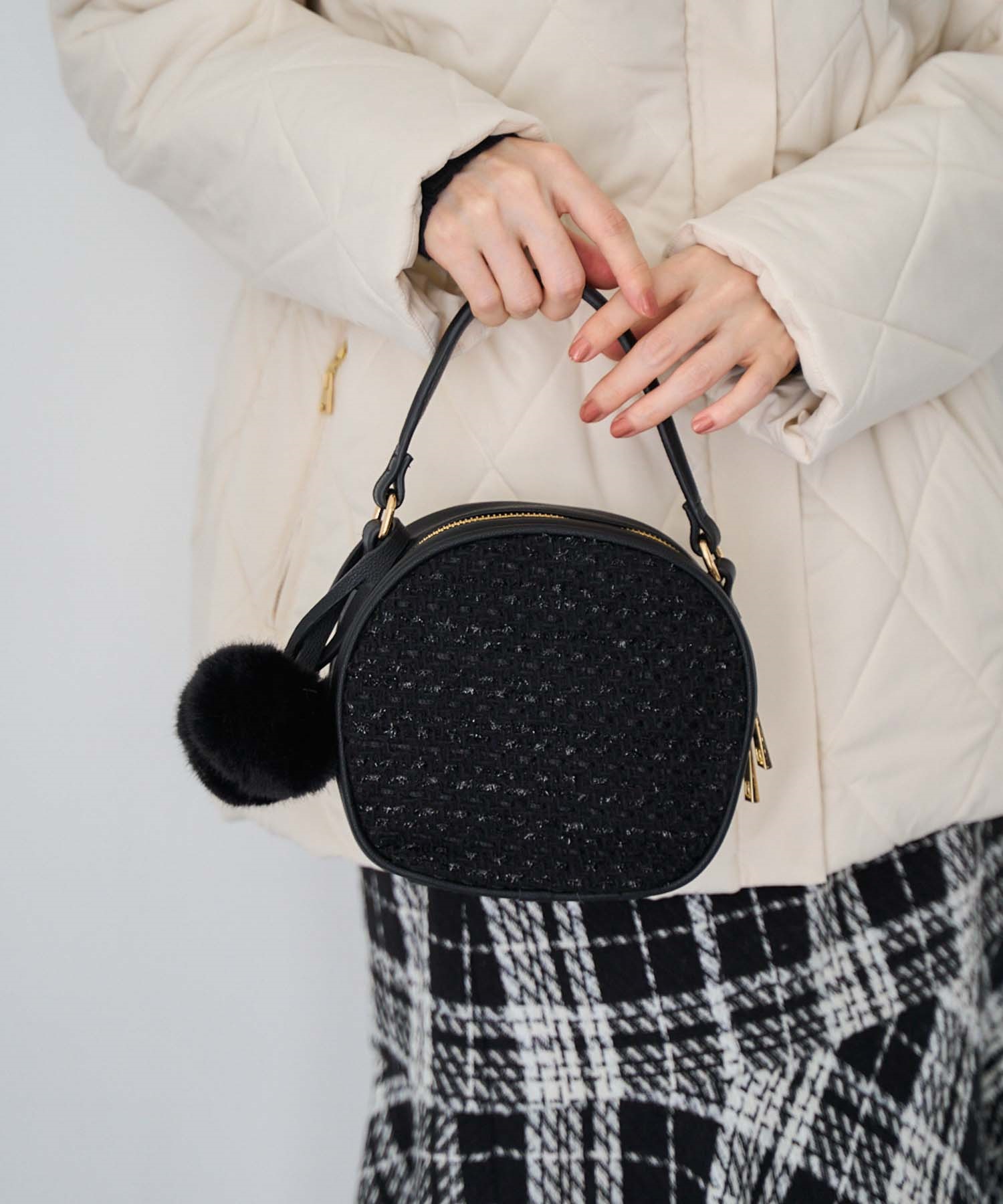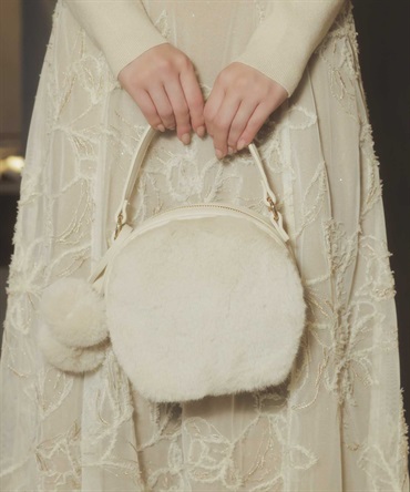 ファーバッグには取り外し可能なポンポンチャームがアクセントに。